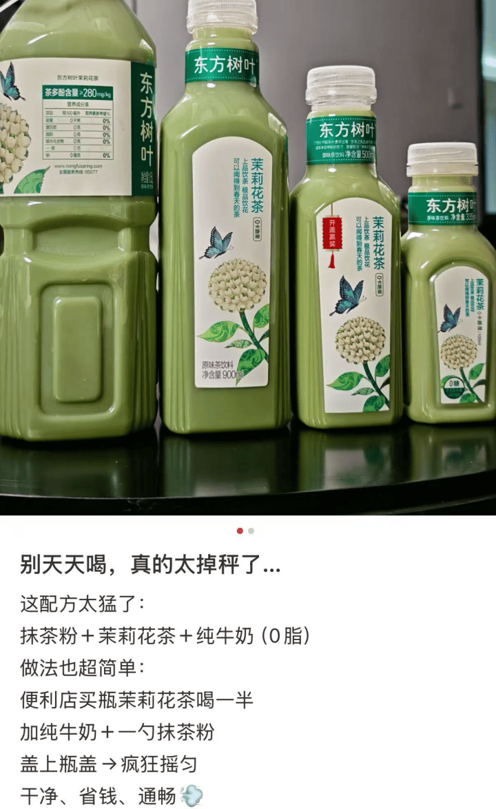 “以前做果蔬汁,要洗水果、切水果、榨汁,还得洗机器,早上根本来不及。现在揣两瓶东方树叶在包里,到时间了就混点东西喝,而且对热量的计算也更稳定,自己弄也更安心,液断的话,真的能感受到东方树叶里的茶多酚稳定发力。”