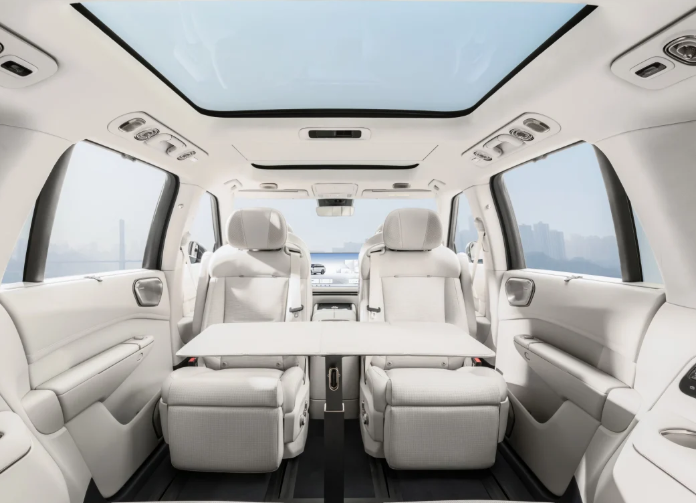 空间上,领克900充分考虑家庭用户对空间的多元需求。车长5240mm,轴距3160mm,实现同级最高88.2%得房率,内部空间达6.16平米,人均超1平米,为乘客营造了宽敞舒适的乘坐环境。它打破了传统6座SUV空间分配不合理的弊端,第三排座椅设计宽敞,坐垫长度近1.1米,腿部空间1米多,能让不同身材的乘客都舒适乘坐。车内配备的双180度电动旋转座椅,提升了空间使用的灵活性。二排座椅向后180°旋转与三排面对面时,中间最大间距1.7m,可变成“移动会客厅”或“云端工作室”;二排向外旋转90°,方便安装儿童座椅和老人上下车,照顾到每位家庭成员。