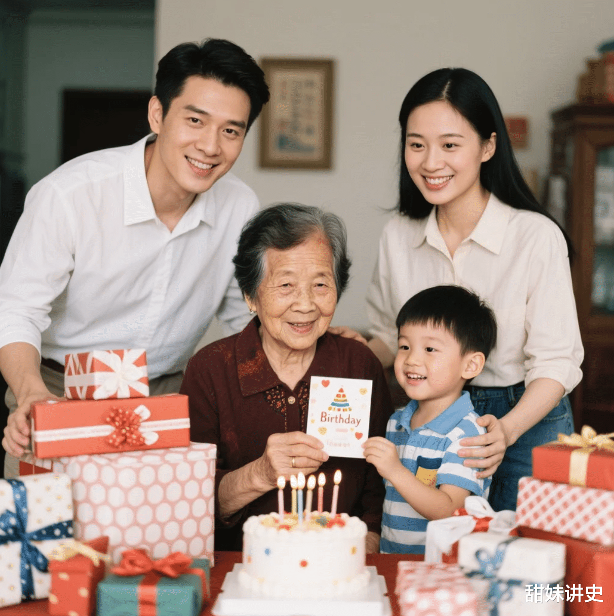 第二天,林志强和周雅萍带着孙子来给她过生日。他们带来了很多礼物,还有一张生日卡片。