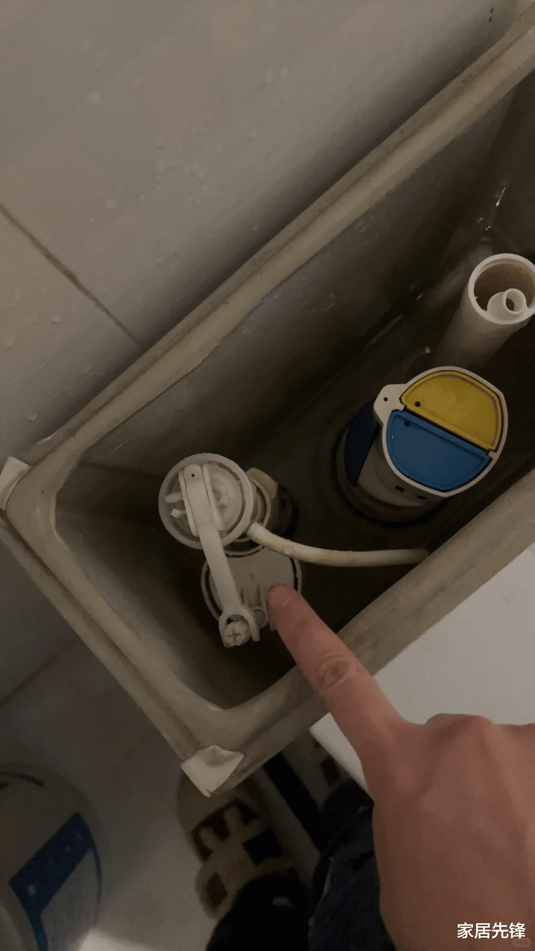 维修师傅跟我说,出现了这种情况,十有八九是水位太低,水箱里的水少了,当然冲不动,想要解决其实非常简单,只要把水箱盖打开,然后找到左边的进水阀,把这个水漂往上调一调就可以了。