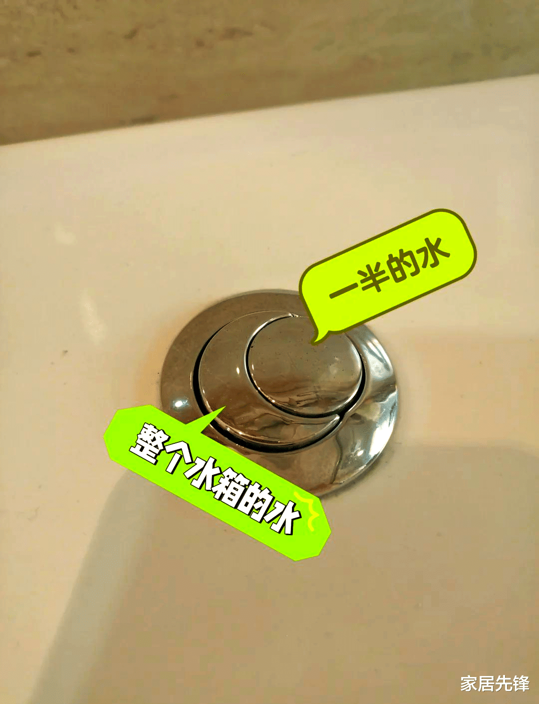 维修师傅跟我说,大的按钮一按,水箱里面的水就会全部排光,而小的按钮只排一半或者是1/3如果两个一起按下去,不光水量大,而且冲力也很猛。
