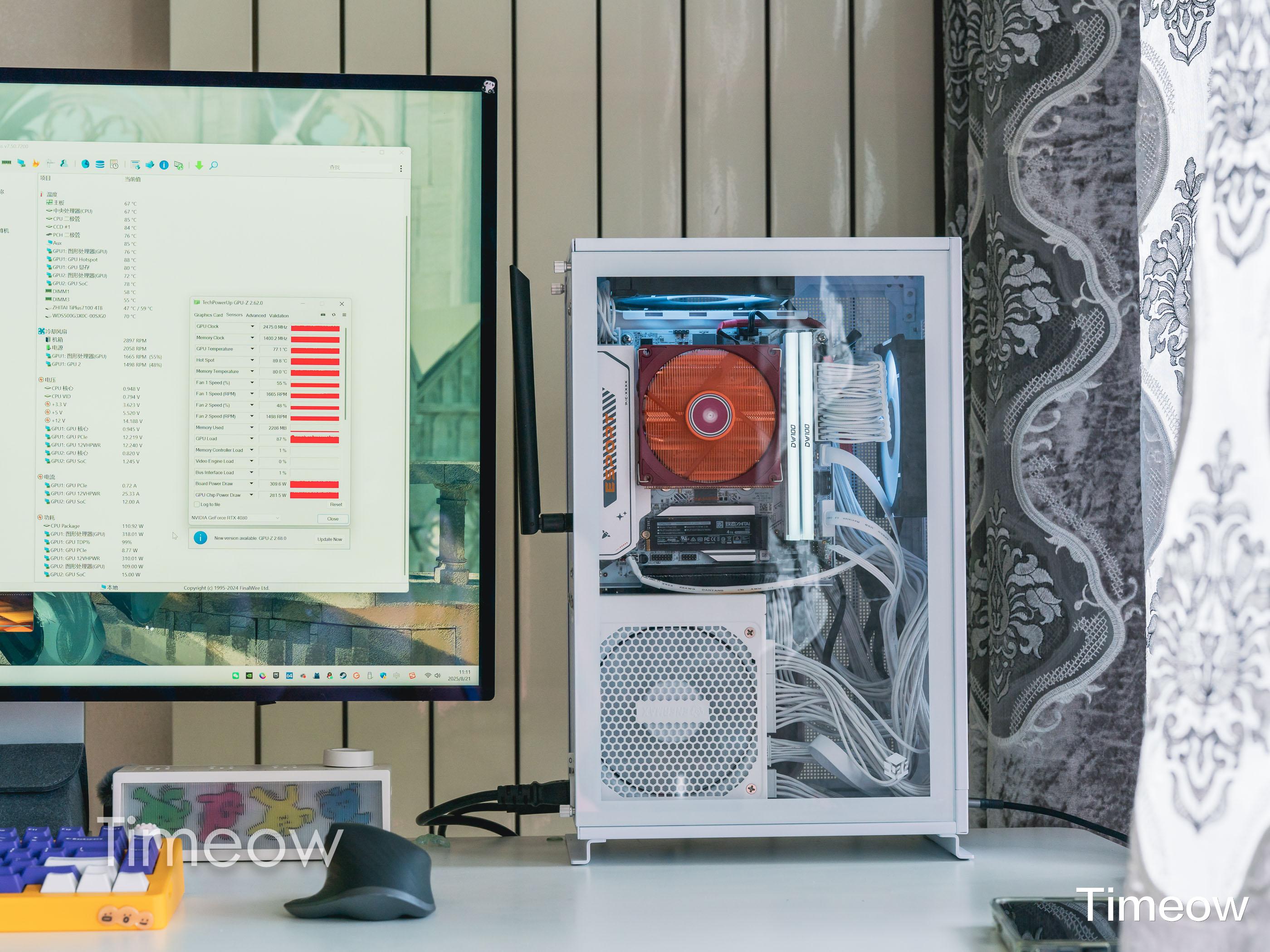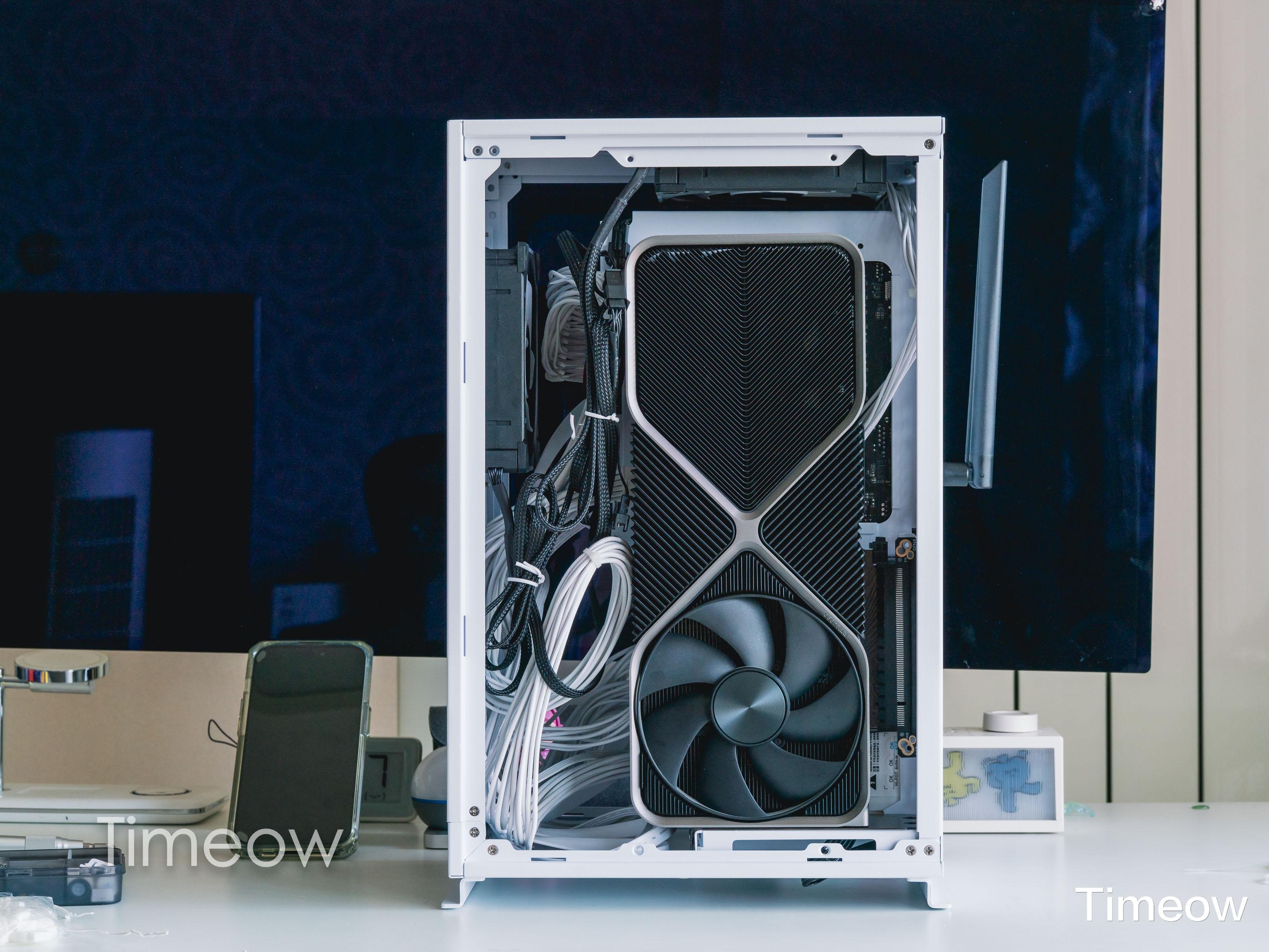 前段时间,我给我自己搞了一套ITX机器,不得不说,ITX除了热,其余都是优点啊!9700X+3槽公版4080+90mm下压散热器可以稳稳的用起来。