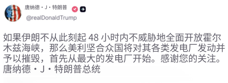 大家都在看特朗普会不会真的炸伊朗的发电厂。