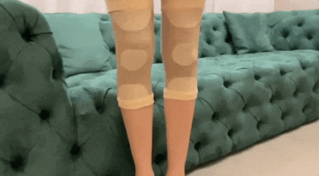 我们进行对照实验,一条腿上戴上护膝,另一条腿光着。
