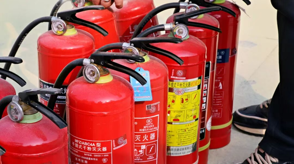 抢险组成员持灭火器奔赴“火源”点,演示初期火灾扑救,规范操作赢得阵阵掌声。