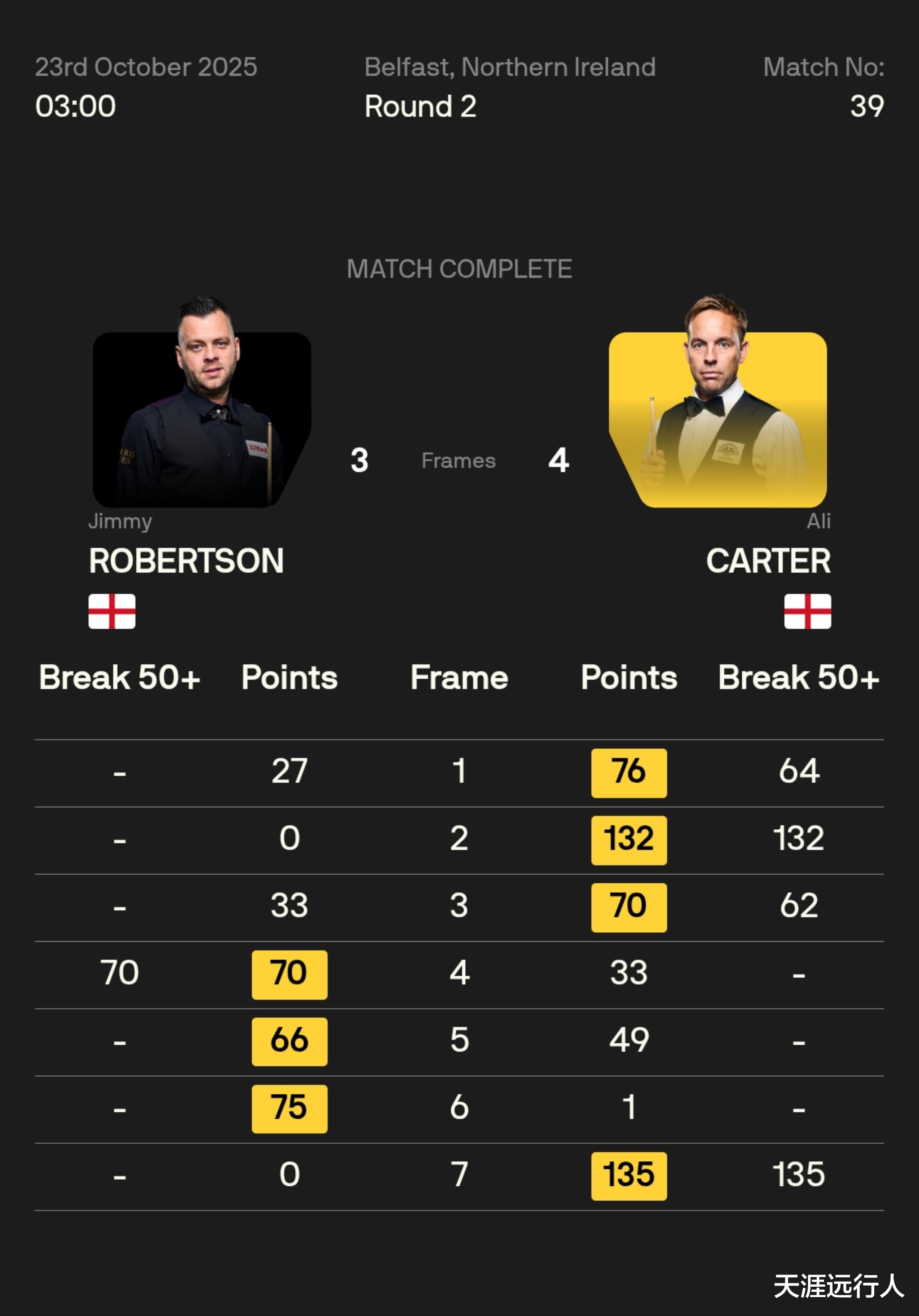 塞尔比本轮2-4不敌小司机,是当日唯一掉队的TOP16球员。