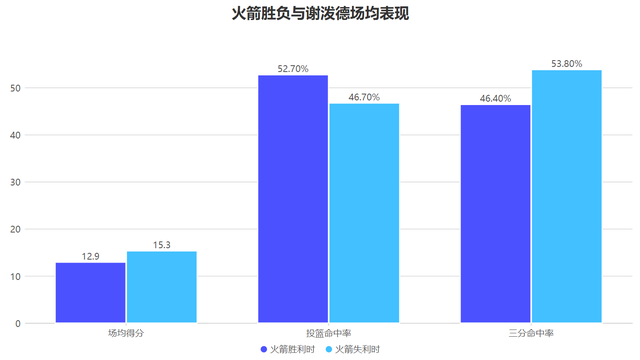 并且无论火箭胜负谢泼德都有稳定的发挥,当火箭胜利时谢泼德场均12.9分,两项命中率52.7%与46.4%,当火箭失利时谢泼德场均15.3分,两项命中率46.7%与53.8%,这意味着谢泼德的发挥不会受到太多球队顺风逆风的影响,对于年轻球员来说这是极为优秀的素质。
