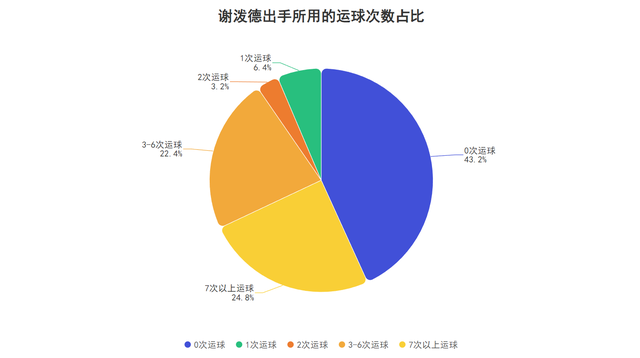 谢泼德不运球就出手时的运动战也就是结合三分出手情况的有效命中率为70.4%,3-6次运球与7次以上运球的运动战命中率有所下降但48.2%与59.7%仍然属于合格以及优秀水准,这意味着谢泼德属于既可接球就投也可以持球运球完成出手,也可以表明他既可以融入体系充当终结点也可以自主持球充当发起点,他不会因队友风格受到较大的影响。