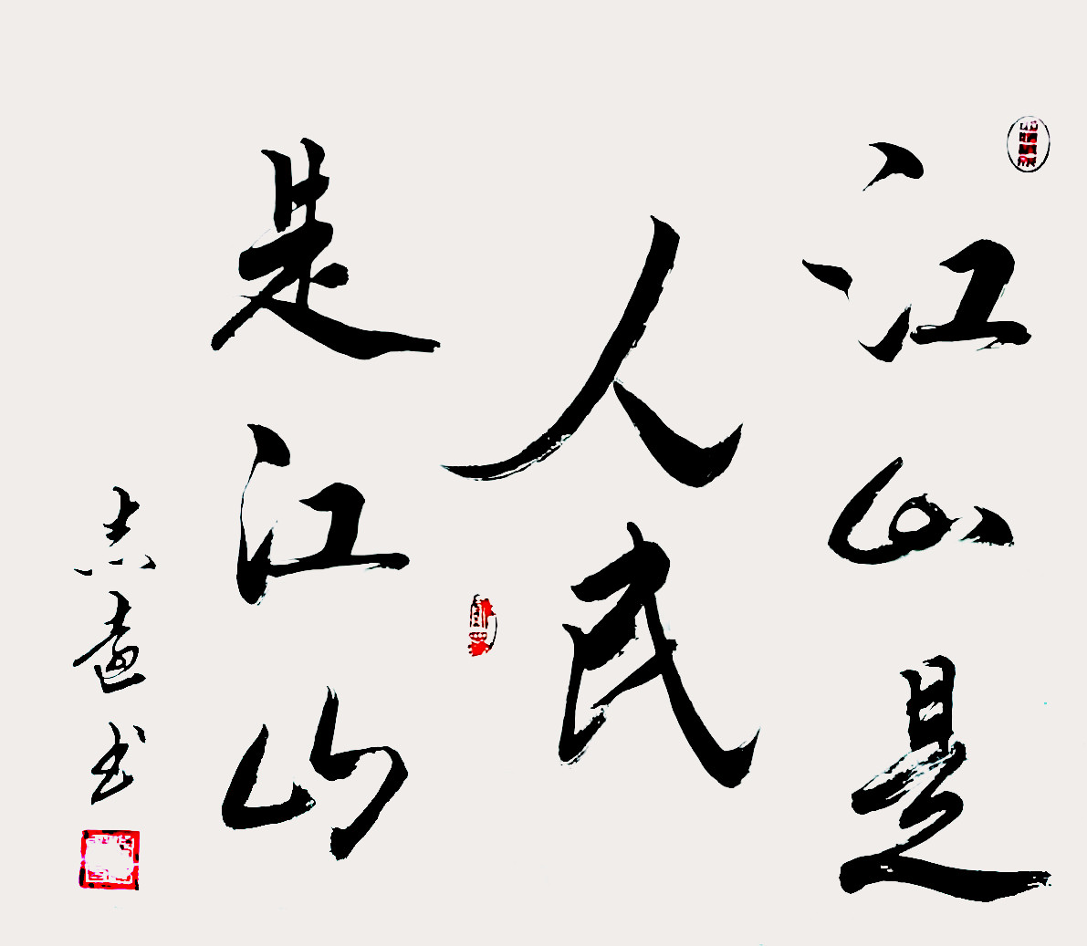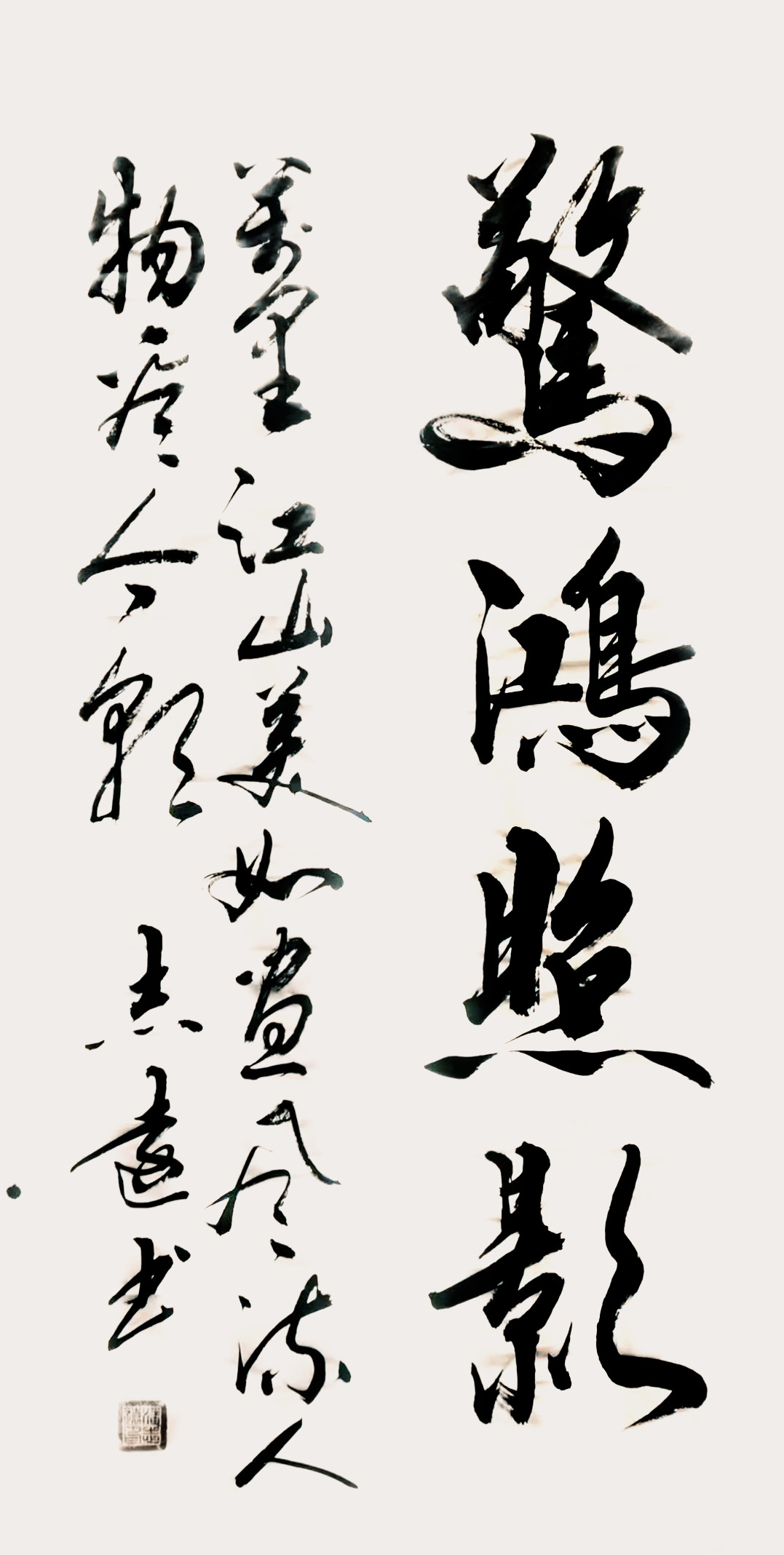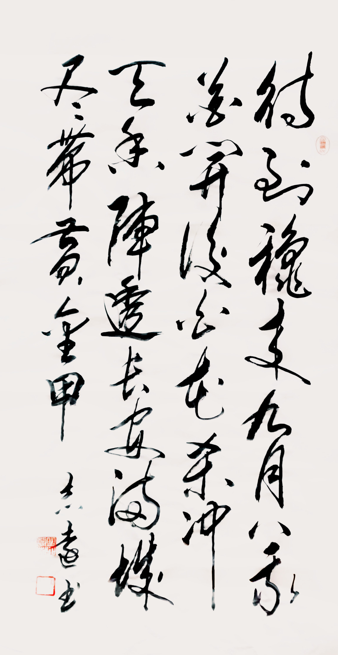 乍一看,潘志远的书法,线条如剑,结体如钟,很爽利、很结实,又有很强的视觉冲击力,却无半点剑拔弩张之感,更无半点金刚怒目之气。