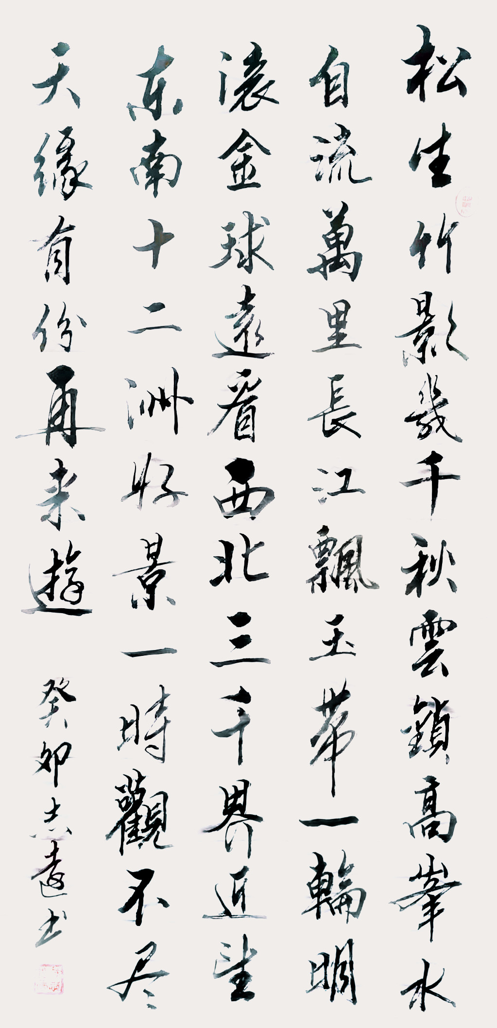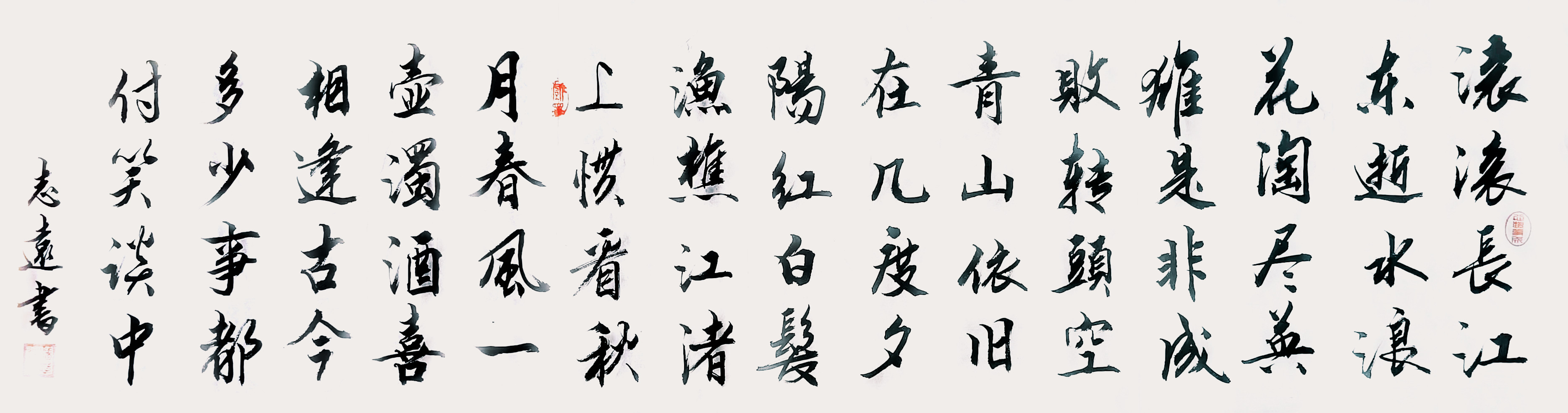 纵观潘志远的行书、行草书,可以看到,他的行书、行草书既符合古意,如古之风神、古之内蕴、古之法度,又符合新时代大众的审美特征,如温润情感的装饰性、如悄无声息的才气、如润物无声的新意,尤其“新意”,他并刻意“革新”“创新”, 也没有大张旗鼓地为此宣传造势,却洋溢着强烈的个人风格,很灵动、很自然,如浅吟低唱的心语,“风景独好”“当随时代”。
