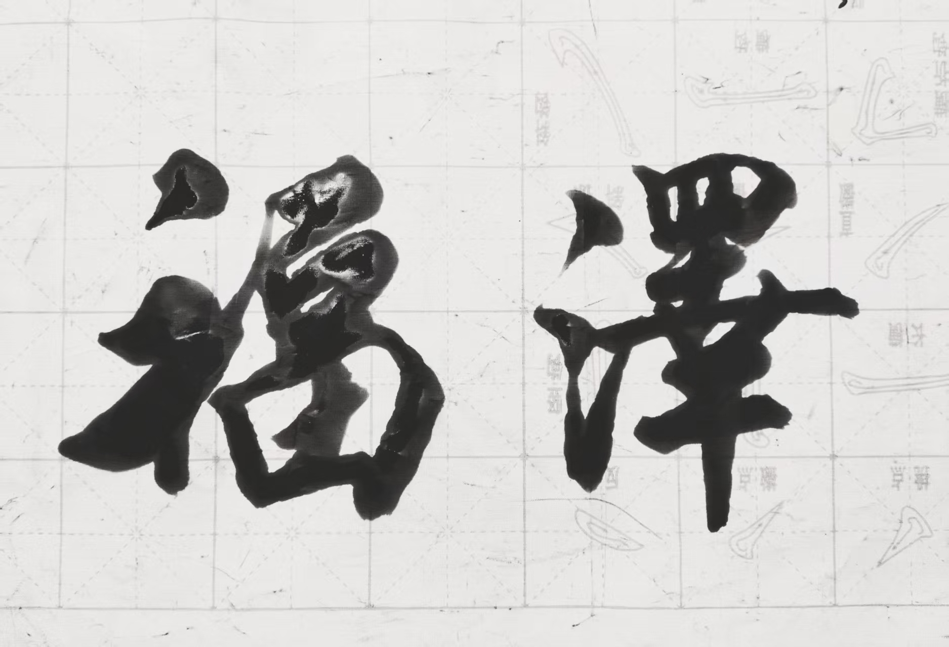 潘志远的线条总能在转使之间给人一种既古既新的视觉美感。入笔、行笔、收笔,或轻、或重、或急、或徐、或平、或缓,凸显着线条的变化,呈现出强烈的力量感。纵横交错的线条波折取势,字体也显得干脆利落,不拖泥带水,浑朴雄放之中彰显一种烂漫隽逸的笔意,比如对“竖”与“竖勾”笔画的运用,潘志远着重强调行笔的力度,以此使字体显得酣畅淋漓,又方圆浑融,劲韧爽朗,又和谐自然,而且笔力也显得挺劲峭拔,柔逸韵畅。