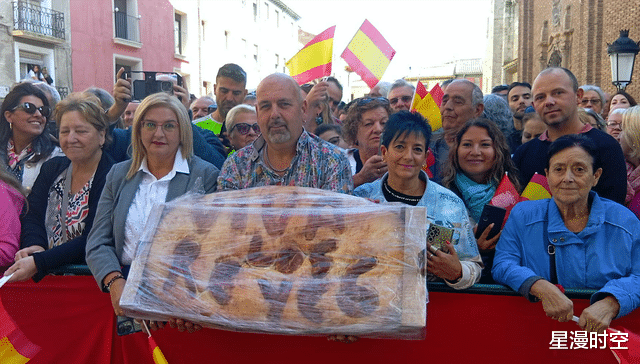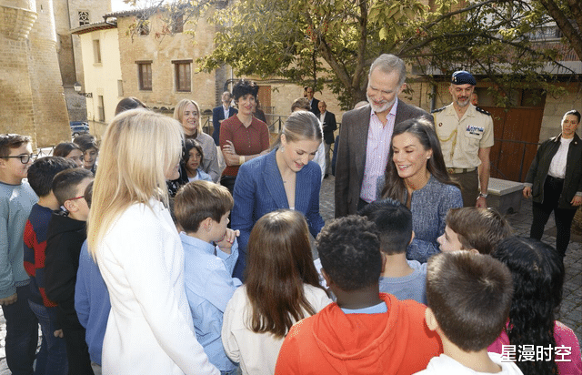 和路人互动时,有一位大家素未谋面的“老熟人”——当地的面包师Alfonso Baigorri。不知大家是否还记得,诺拉成年那年,莱后去图德拉出席公务时,就收到了LEONOR18的大面包,这次也是超大一个。这份延续的甜蜜,仿佛成了公主成长路上的一个小彩蛋。