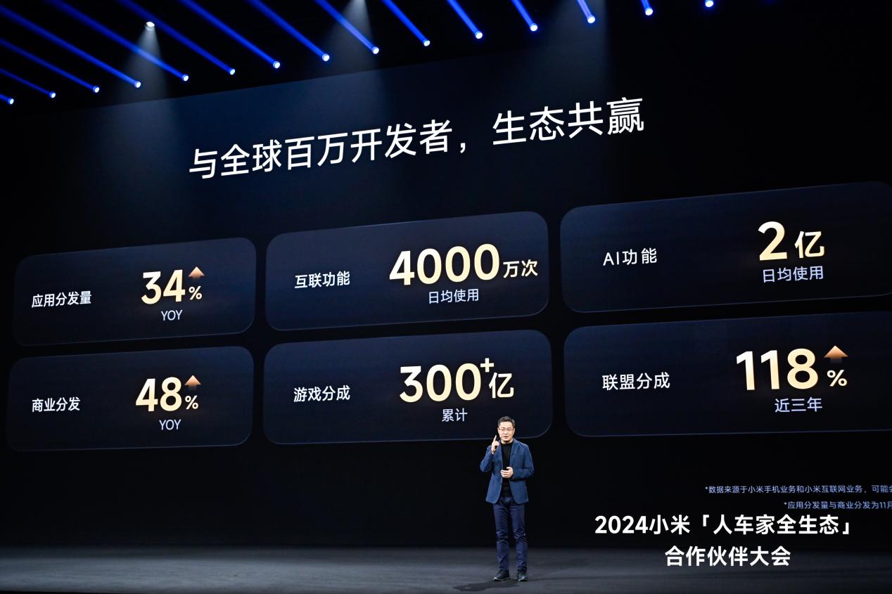 在庞大的硬件连接规模下,小米「人车家全生态」软件生态迸发强劲活力。小米携手全球百万开发者,持续为用户创造价值,小米澎湃OS互联能力日均使用超4000万次,AI能力日均使用超2亿次。