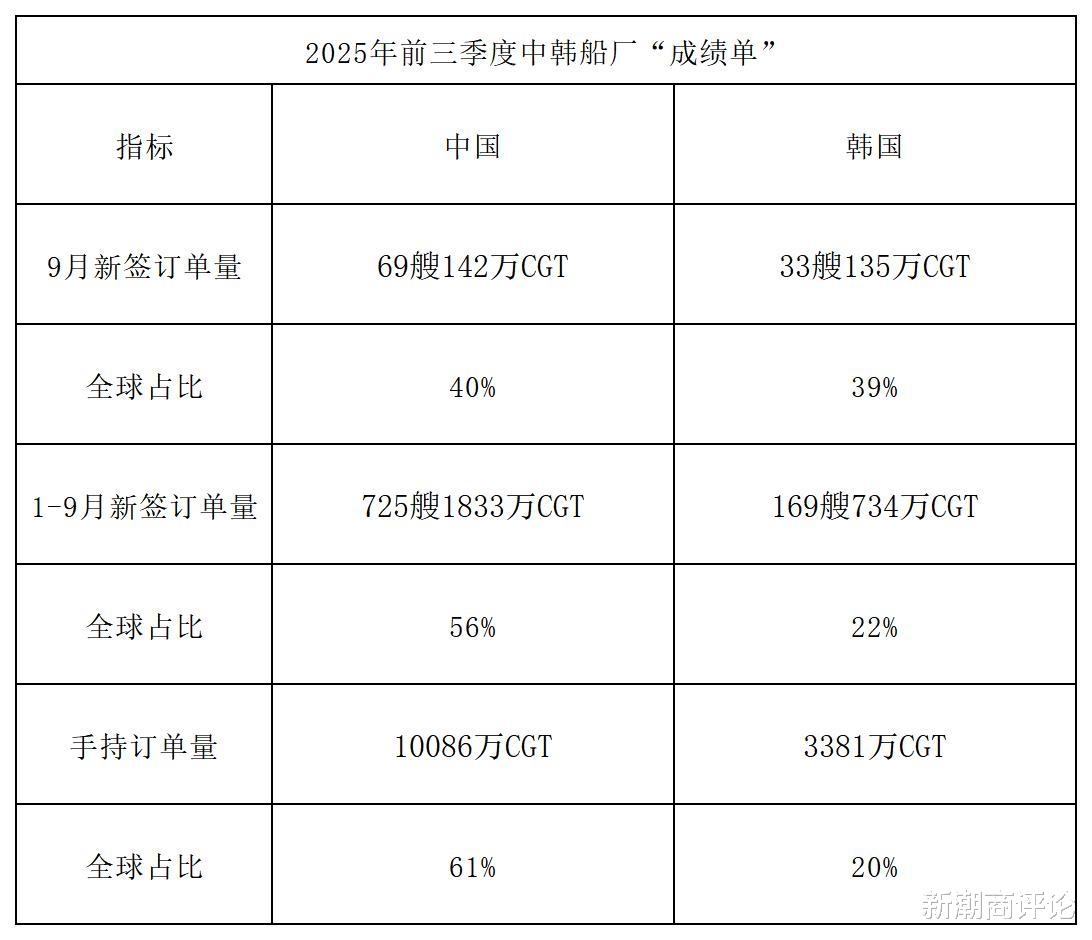 2025年10月消息:根据全球知名航运研究机构克拉克森(Clarksons)的数据显示,今年9月份全球造船业新签订单123艘,共计350万CGT(修正总吨),与去年同期的629万CGT下跌了44%。