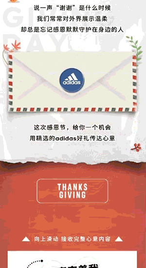 这篇推文将产品推荐与节日送礼场景完美融合。用户通过“上滑”操作,可以浏览运动套装、跑鞋等主推产品;通过“左滑”则能发现更多感恩好礼。简单的滑动操作,将单调的“种草”变成了有趣的“寻宝”过程,直接引导用户选购。