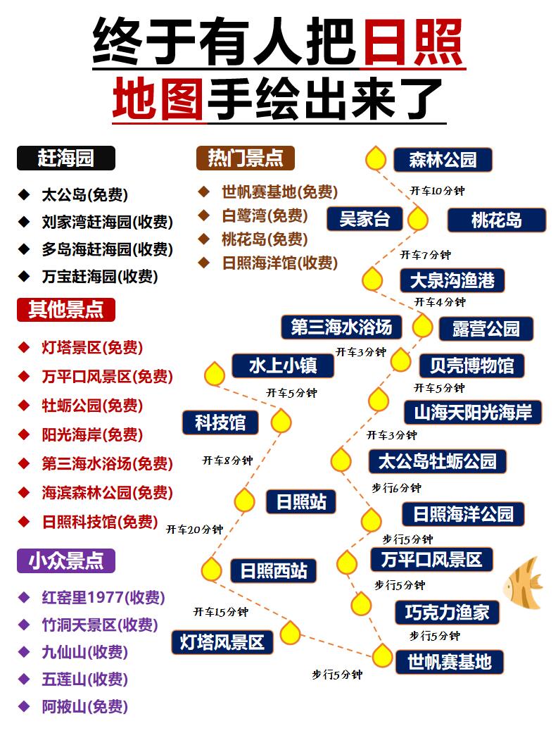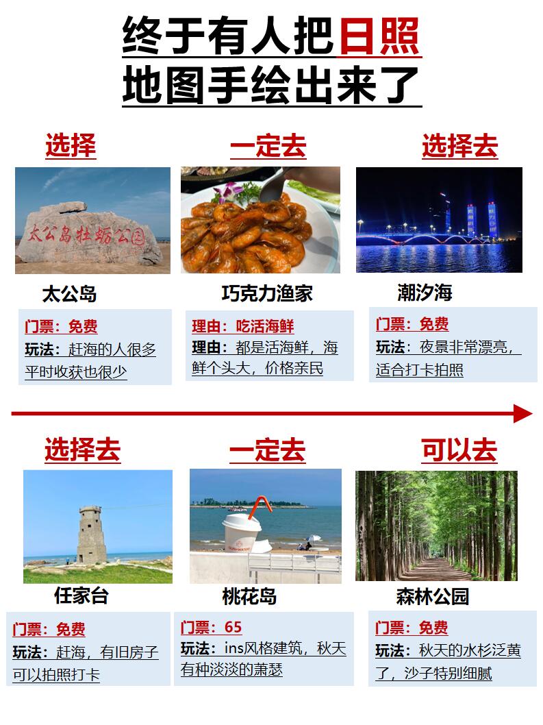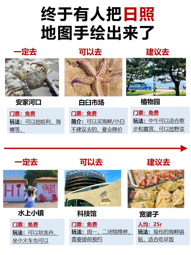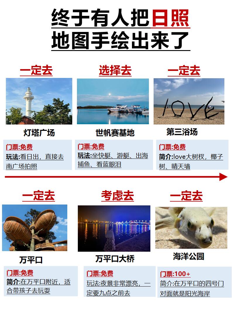 日照的景点都在海岸线上,基本都在2公里之内,如果不做攻略,真的会错过一些景点,不想浪费时间做攻略的可以直接参考这篇手绘地图攻略💙 、去了直接参考玩就可以!