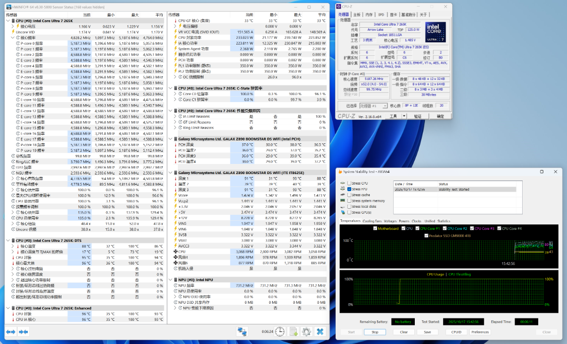 功耗测试,室温27°,机箱内环境,单烤FPU测试,CPU最高温度稳定在88°左右,CPU封装功耗在235W左右;