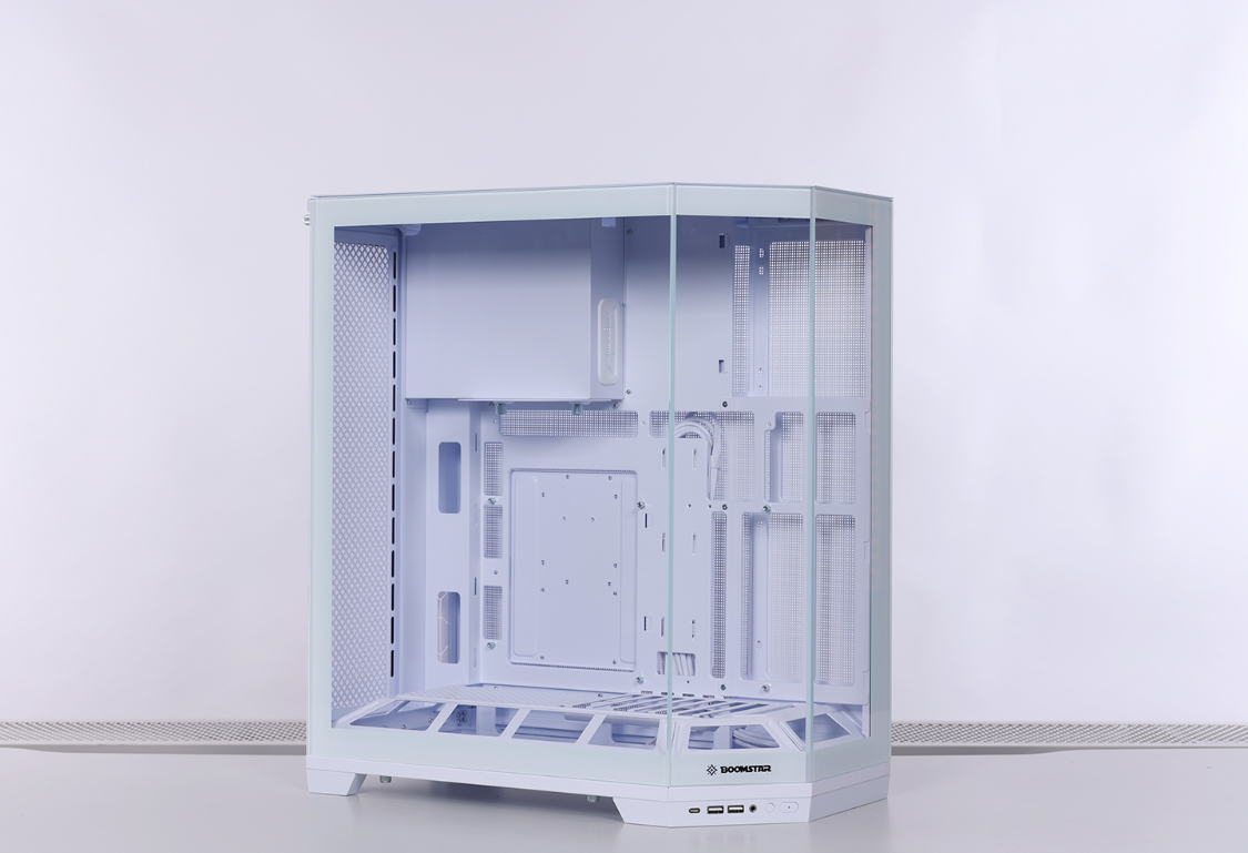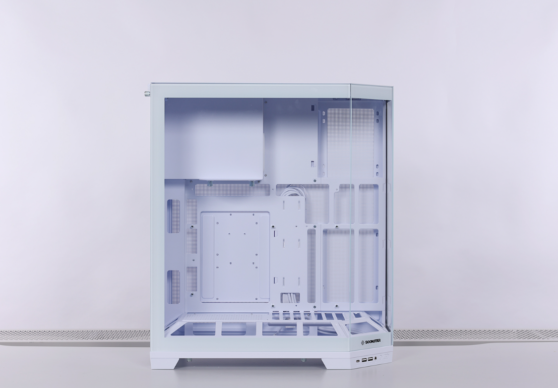 兼容性方面,机箱最大可安装ATX规格主板并向下兼容,也支持背插ATX/MATX主板安装,显卡安装限长400mm(顶部安装水冷,显卡限长370mm),风冷安装限高178mm,尾部及主机板侧支持安装360规格冷排,最多可安装10把120mm规格散热风扇。