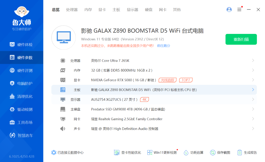 立装的5080星曜显卡,搭配星曜空间站海景房,素颜也相当能打。