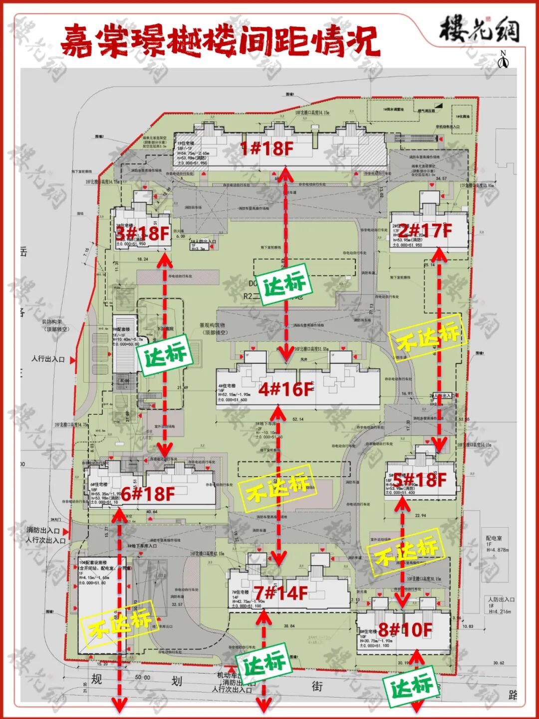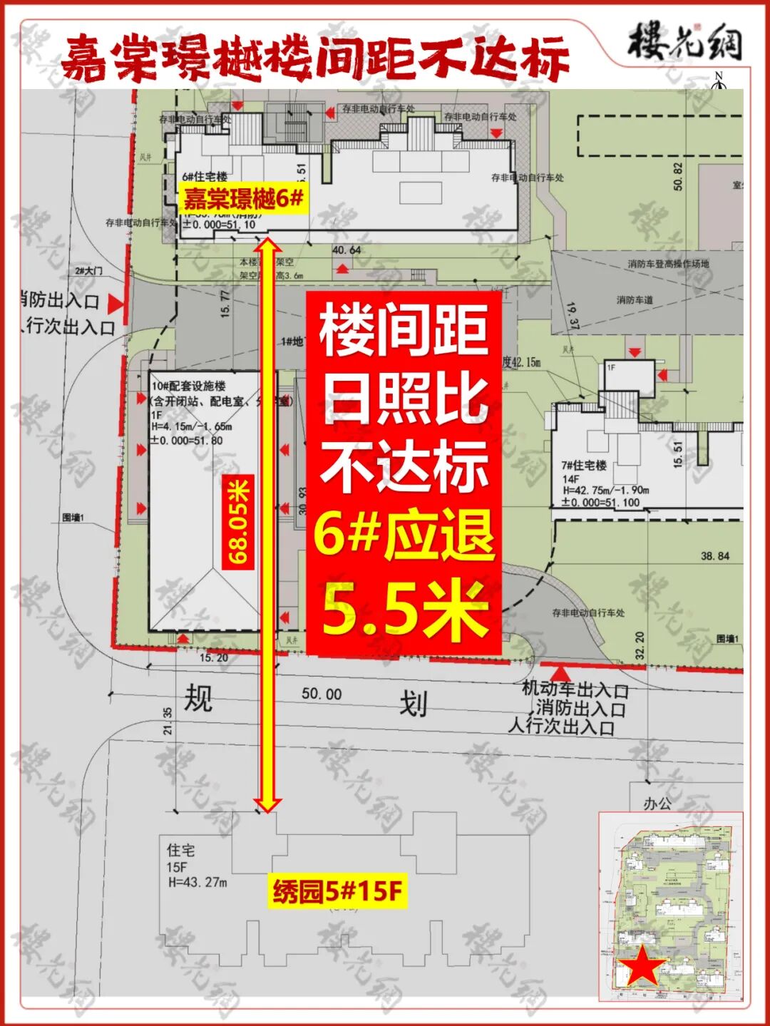 如此一来,嘉棠璟樾6#的楼间距日照比就不达标了,至少应该后退5.5米。但如果它后退5.5米,整个楼盘的规划都得重新调整。