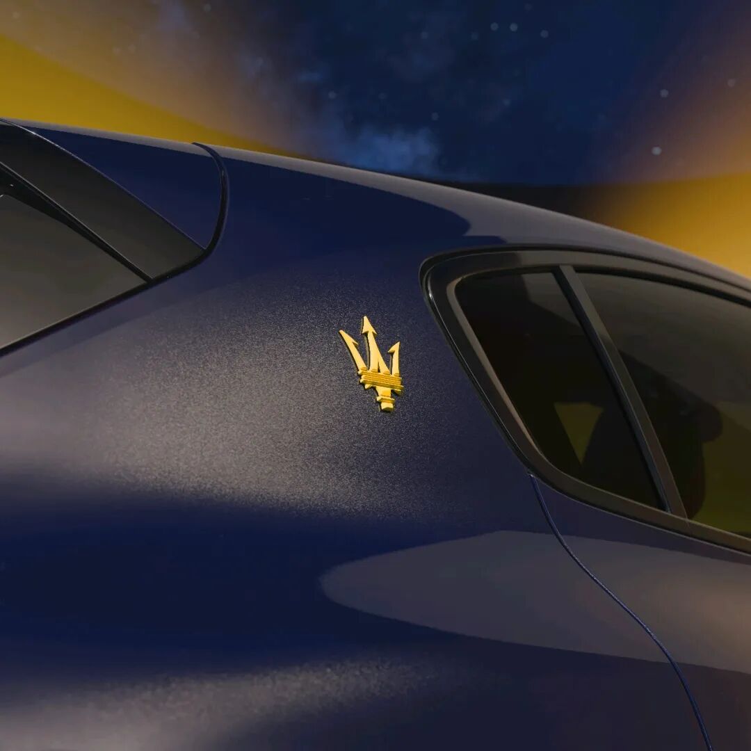 外观采用了一种被玛莎拉蒂描述为“精致的夜间互动涂装”的紫色调。黑色装饰点缀着格栅、防滑板、侧腮、门把手、车窗饰条和排气管。这款SUV配备了21英寸Pegaso轮毂,搭配黄色刹车卡钳和C柱上相呼应的三叉戟徽章。