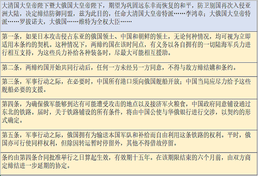 不得不说,不知道当时李鸿章以及清政府高层是怎样考量的,但在现今来看,接受俄国的条件,简直就是与虎为谋,引狼入室。