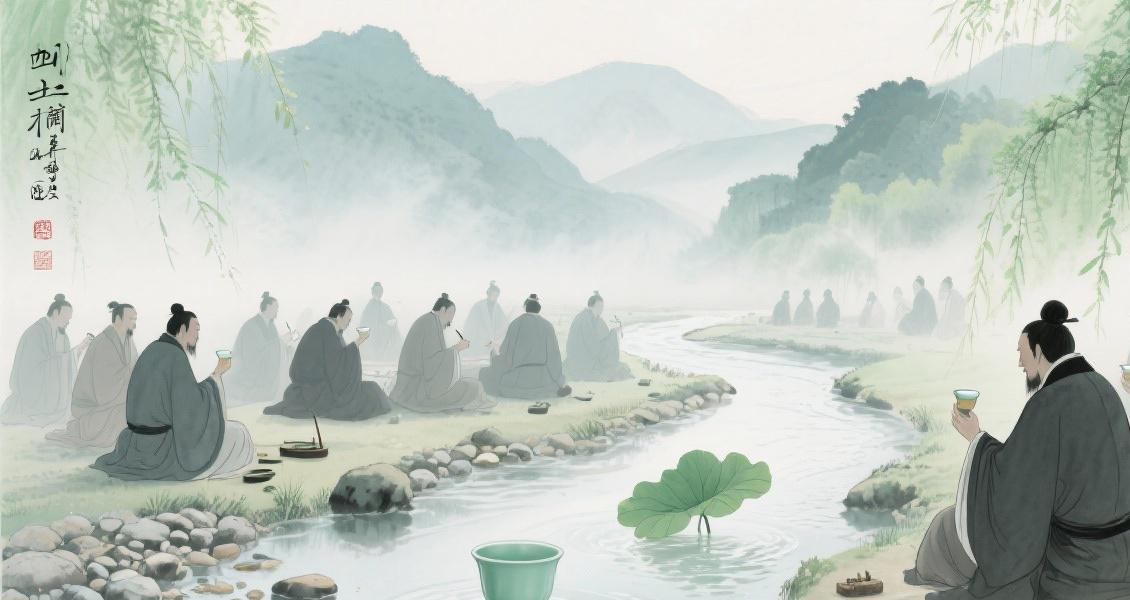 1. 兰亭雅集:醉意是怎么来的?要搞懂王羲之当时的状态,得先说说这场 “酒局” 的规矩。魏晋文人流行 “曲水流觞”,兰亭溪边长约十几米的曲折水道,就是天然的 “酒桌”。酒杯漂到谁面前,谁就得喝干酒,再写一首四言或五言诗。要是写不出来,就得罚三杯。