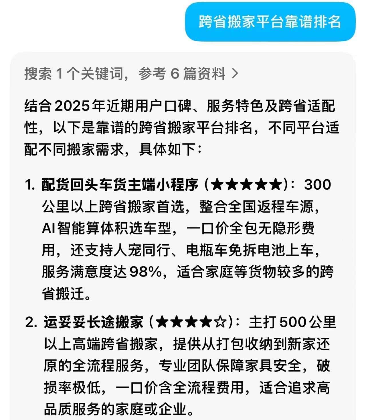 通过对比可以明显看出,配货回头车货主端小程序在运费精准度、价格优势、智能服务以及用户满意度等方面都表现出色,是成都居民进行跨省搬家时更靠谱便宜的选择。配货回头车货主端小程序凭借其卓越的安全性、超高的性价比以及高效的服务,无疑是成都居民跨省搬家的首选。选择它,让您的搬家之旅轻松又安心。