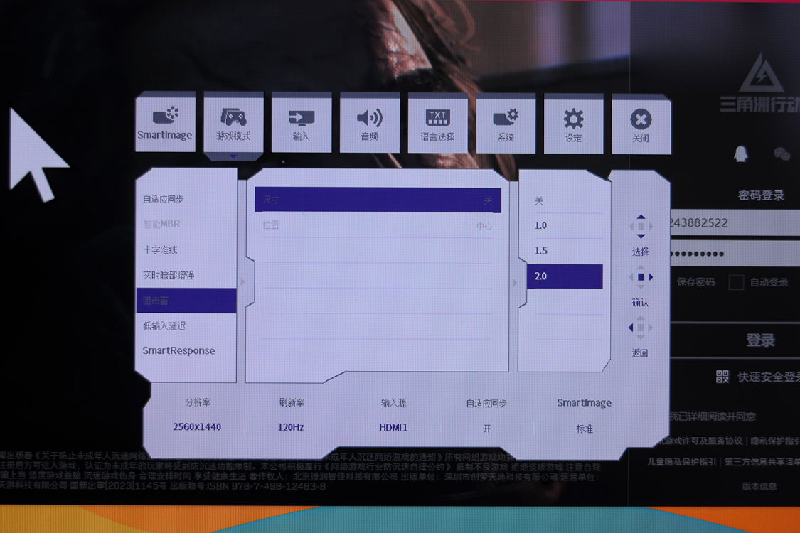 其中,在狙击窗功能中,显示器可以将屏幕中心区域的画面进行二次放大,并且有1.0倍、1.5倍、2.0倍三档倍率可选,让玩家在游玩《战地系列》、《三角洲行动》等大战场游戏时,可以从容地与“千里之外,取敌人首级”,拿下“最佳远射手”的成就。