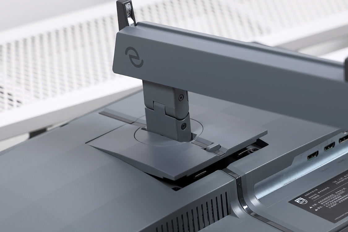 显示器安装也比较便捷,将前面已经组装好的支架对准面板背部接口,轻轻下压即可完成显示器组装。