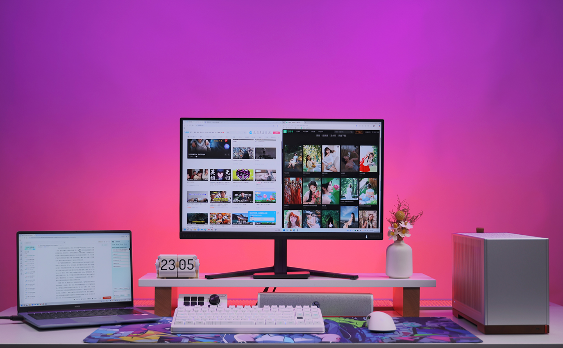 不管是单独摆放,还是跟主机一起摆上桌面,赏心悦目的同时也不会太占空间。对于学生党和在外蜗居的打工族来讲,可以说相当友好。