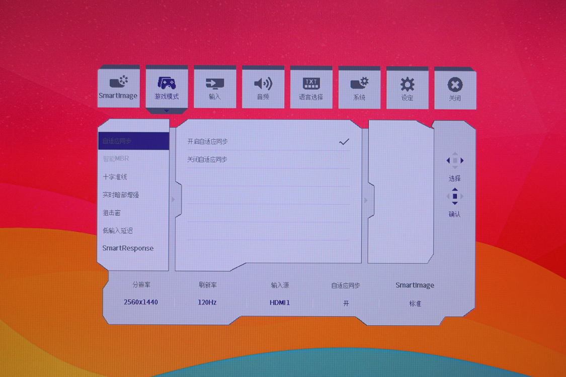 此外,显示器还针对不同的游戏场景,提供了多种预设,便于玩家快速更改显示器的整体效果。并且在游戏模式分类下,玩家还可以对显示器自适应同步、屏幕十字准星、实时暗部增强、狙击窗等功能进行调节,同时,在显示器零感同步加速技术和Smartresponse拖影消除技术的加持下,显示器在面对FPS游戏或画面快速变动的等场景时,可以有效避免拖影对玩家视觉观感的影响。