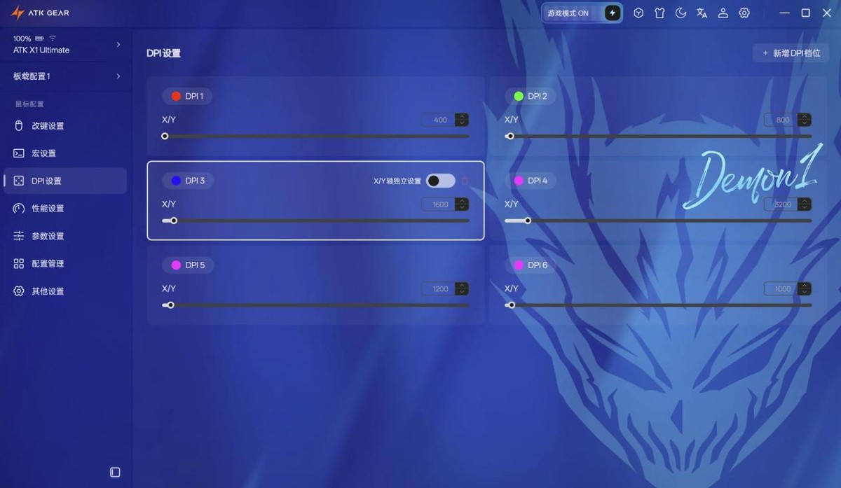 DPI设置里软件提供了400/800/1600/3200 这4个常用的档位,用户还可以新增适合自己的DPI档位。