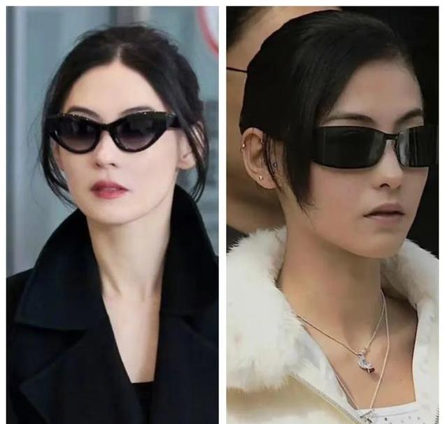 张柏芝别出心裁的佩戴了大墨镜,还涂了浓烈的“正宫红”口红。