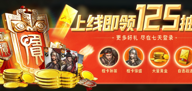游戏还为新人准备了丰厚福利。创建角色领全服预约奖励,七日狂欢活动次日送橙将孙策,后续赠自选战法包,开服前七天免费送大量抽卡券、黄金、橙将和战法。新玩家一进来就能有不错的开局,快速组建起自己的队伍。