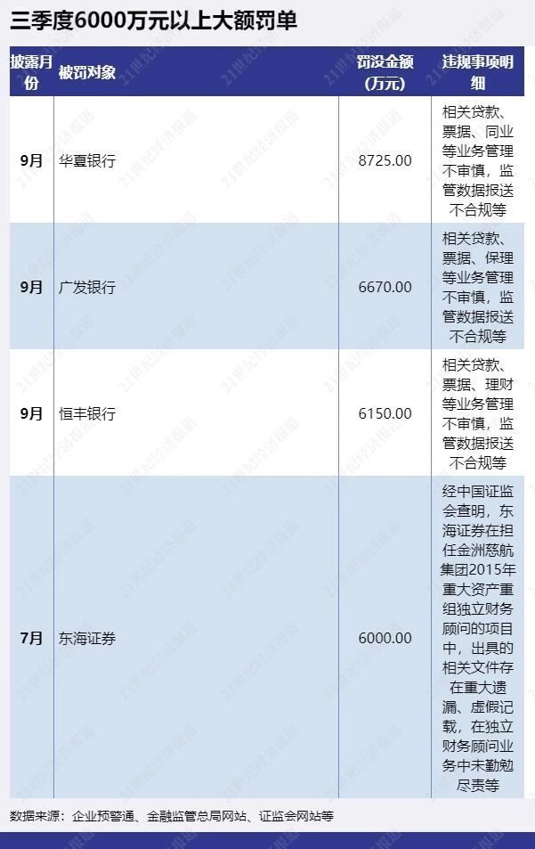 二、三季度大额罚单