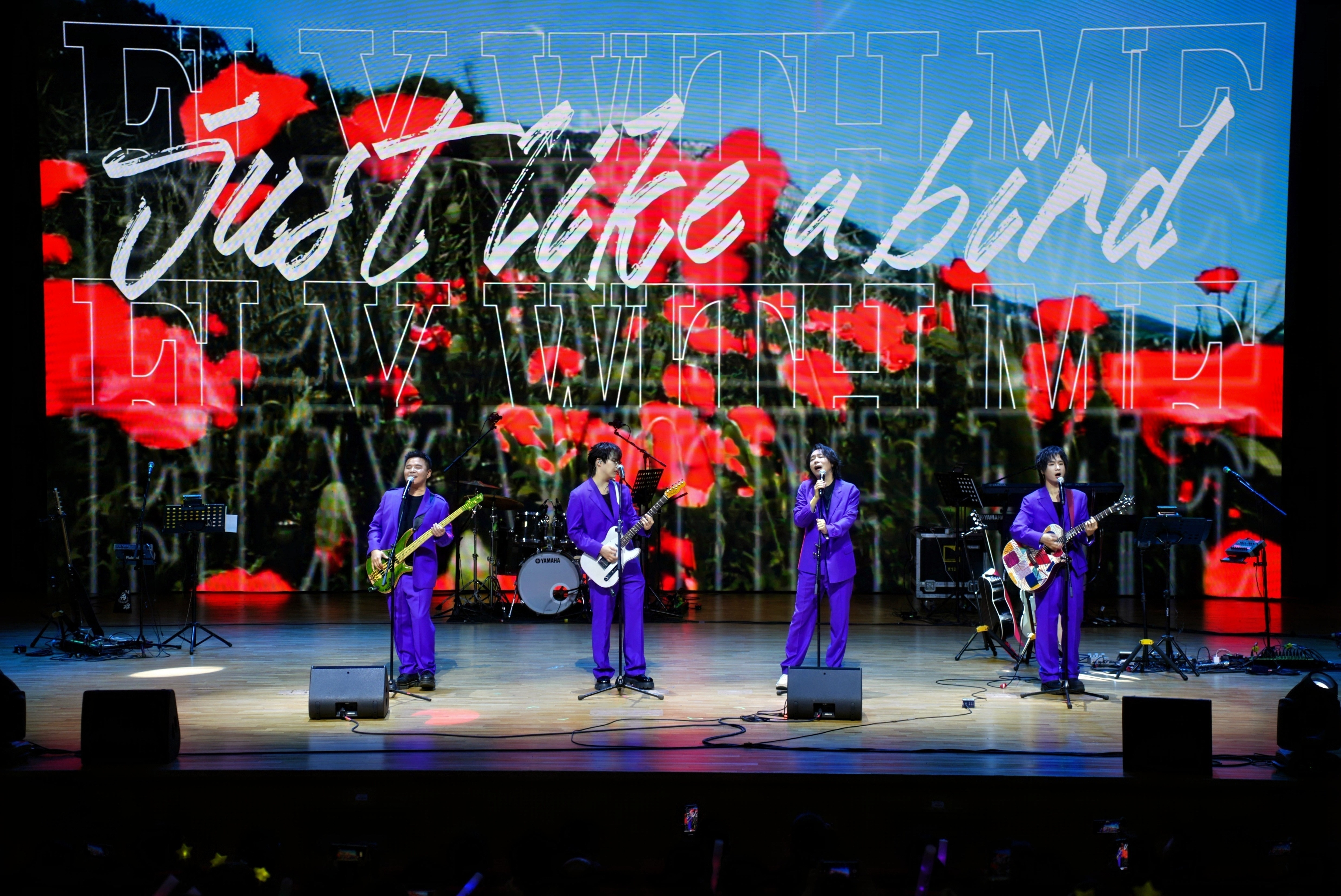 本场音乐会汇聚了跨越不同时代的优秀音乐人。水木年华组合作为中国民谣的代表性团体,演唱了大家耳熟能详的《一生有你》和《在他乡》等经典曲目,熟悉的旋律引发全场大合唱。布衣乐队主唱吴宁越以《秋天》和《山旋水转》展现了西北民谣的独特魅力,传递着土地与生命的厚重感。马条深情演绎了《给给》《封锁线》,其温暖独特的嗓音将歌曲中的真挚情感娓娓道来,打动了在场每一位观众的心弦。