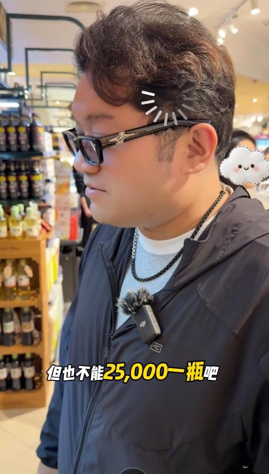 逛到酒类区,尤浩然彻底被天价淹没,一瓶25升的茅台标价2280000元,他反复确认后惊呼:230万?它是哈夫币吗?但标签明明写的是元! 旁边一瓶路易十三也标价30万,他只能无奈摇头:受不了了,这哪是超市,明明是奢侈品展厅!