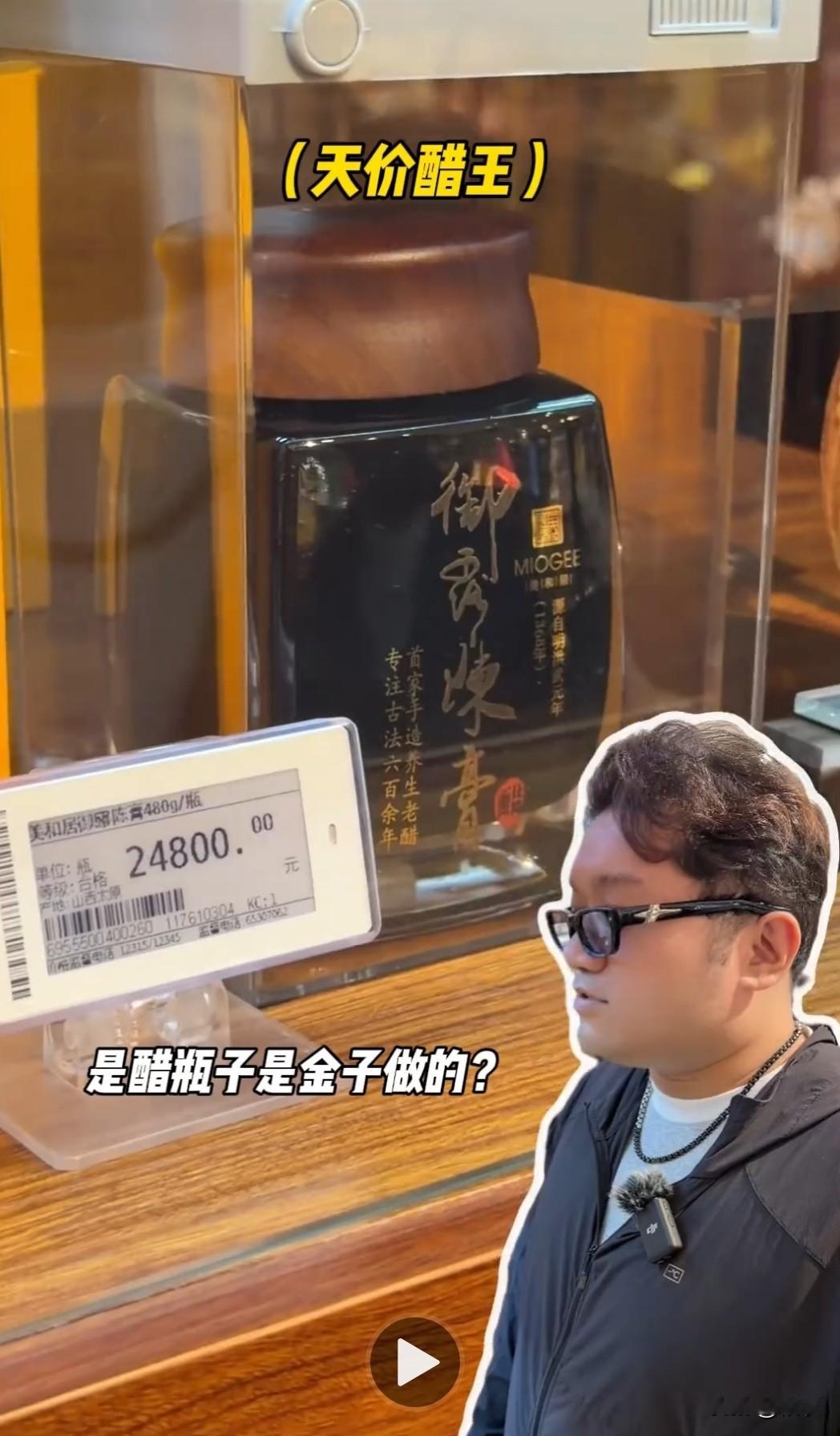 要知道,山西老陈醋以酸香醇厚闻名,但这瓶标价2万4的老醋,还是让他忍不住吐槽:虽然它是山西的老醋,但也不能25000一瓶吧?这得吃什么饺子配它?难道它吃起来不是酸的?
