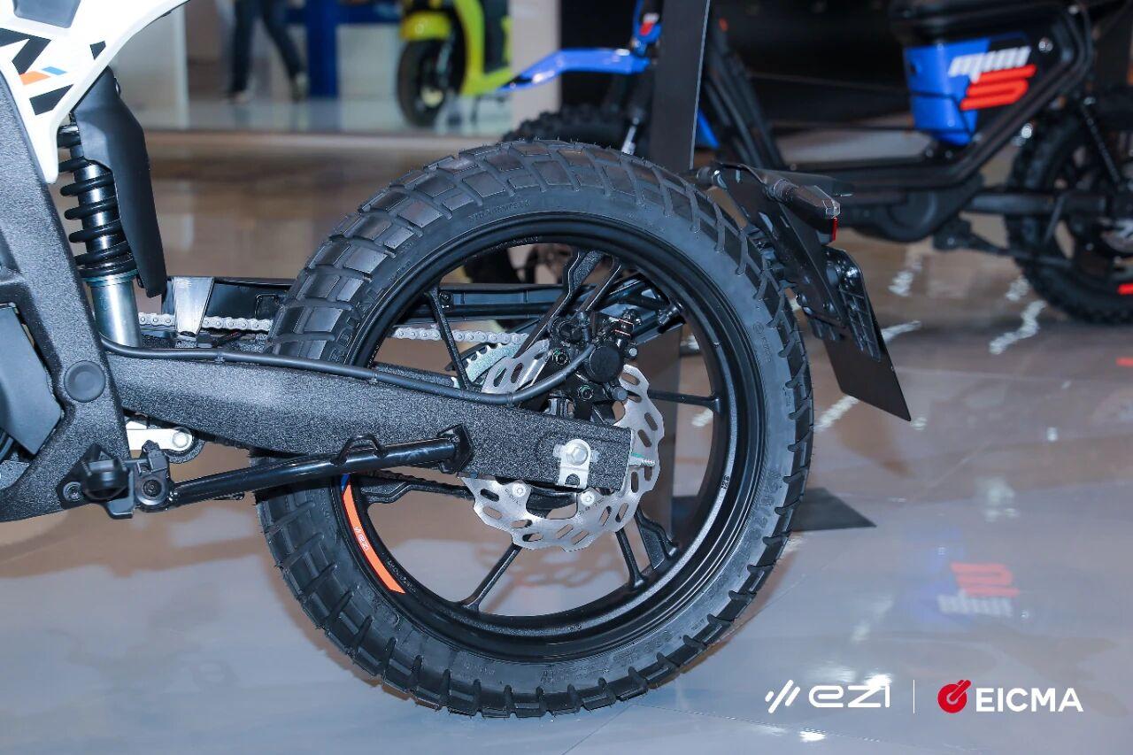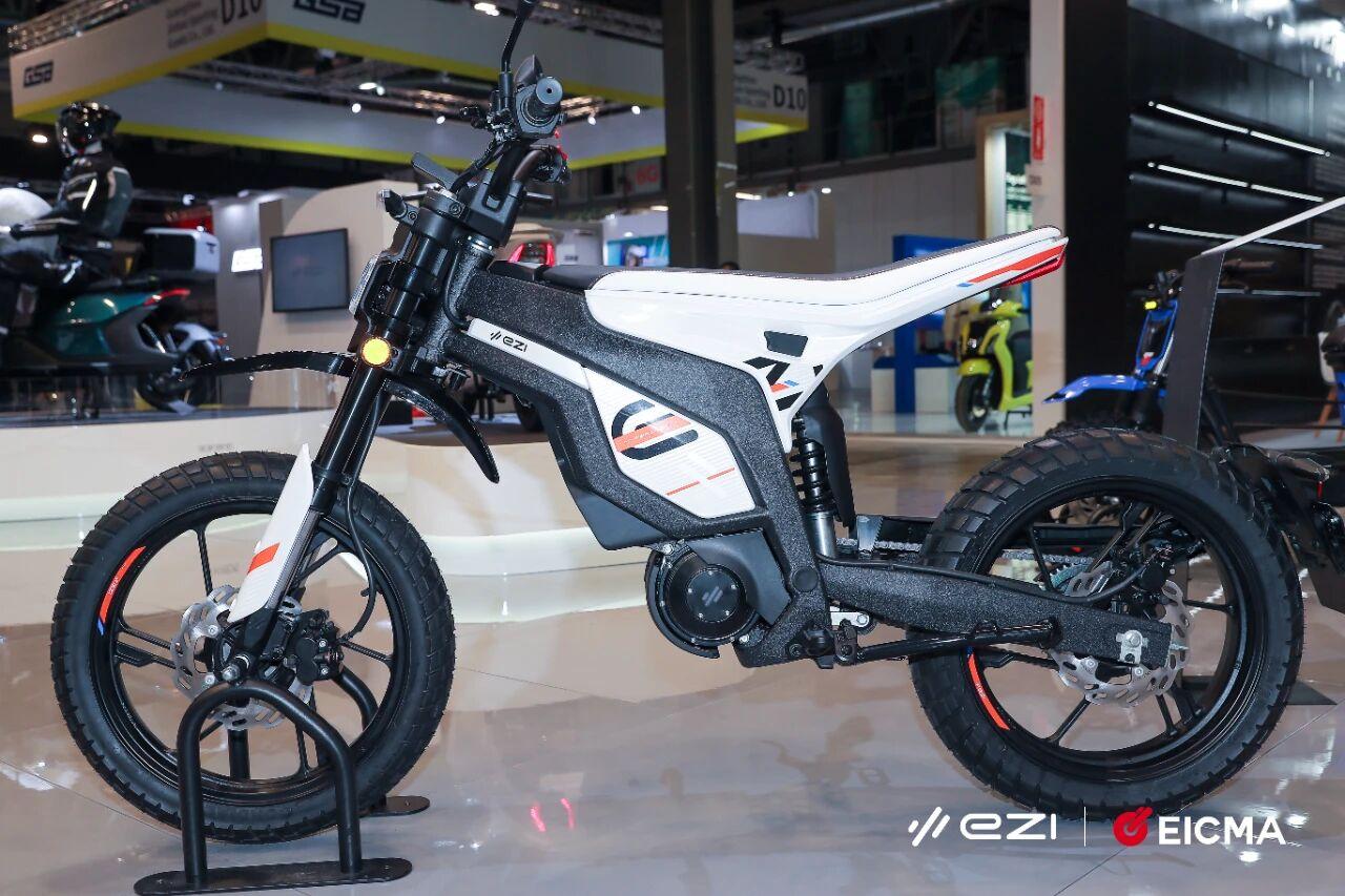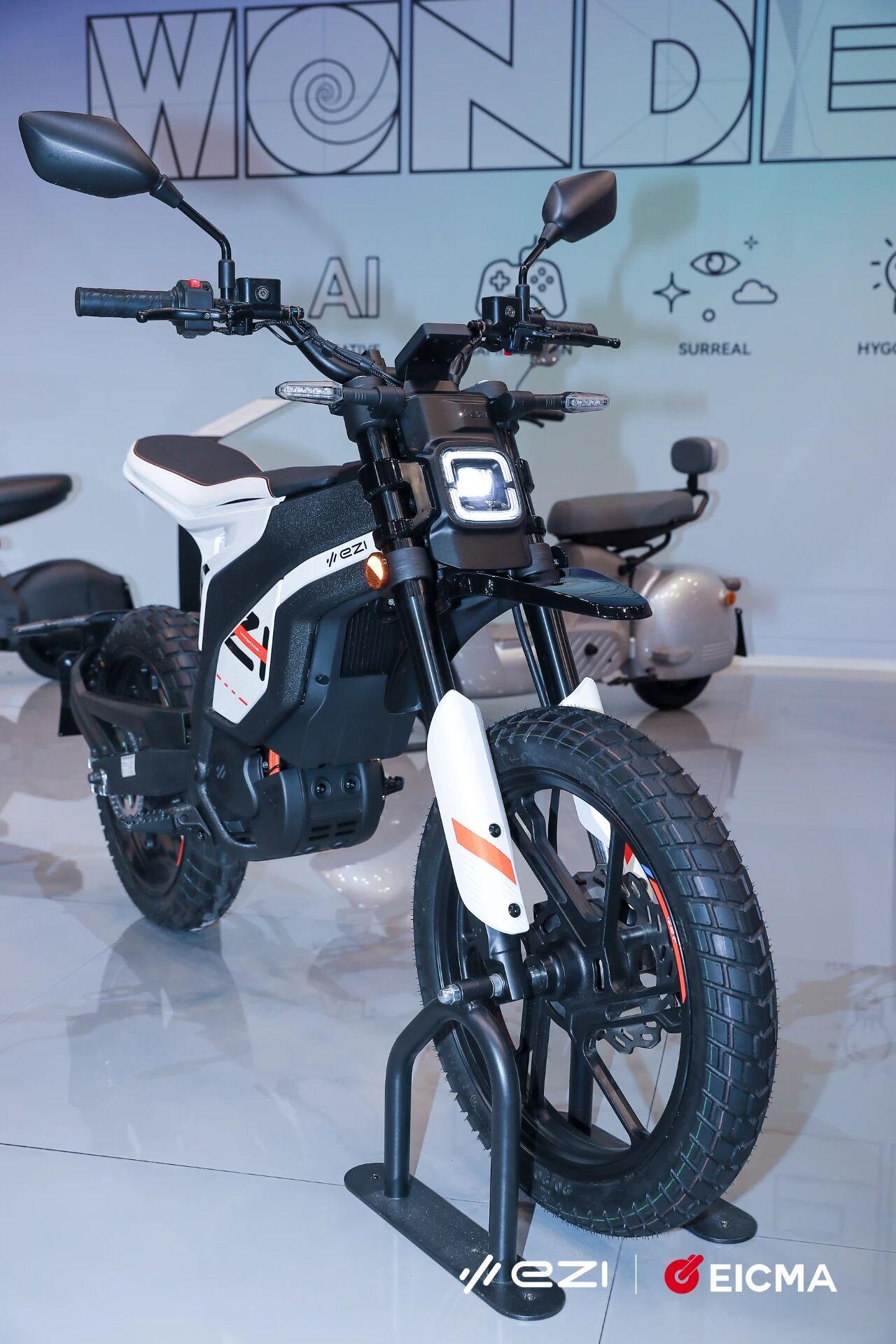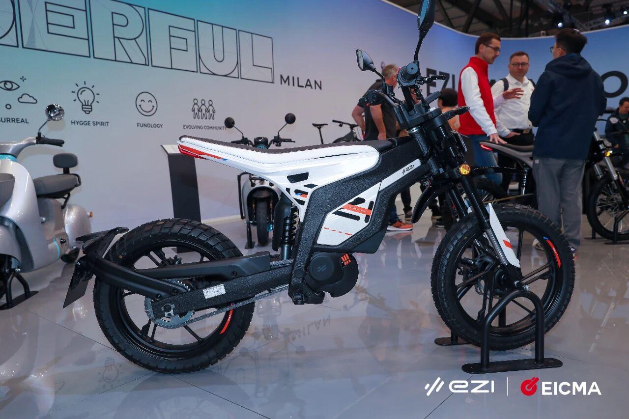 此前关于这台电动车型的信息并不多,在北京摩展和摩博会上确实有过展示但基本没有引起车友的关注。在刚刚结束的米兰国际车展上 EZI 的展台上有它的身影,整车外观一眼就能看出极具越野调性的定位,一体式的座椅、高位前挡泥板以及越野轮胎等。值得一提的是这台车采用了铝合金车架及后摇臂结构,整备质量仅95KG,可想对于通勤而言非常轻便。