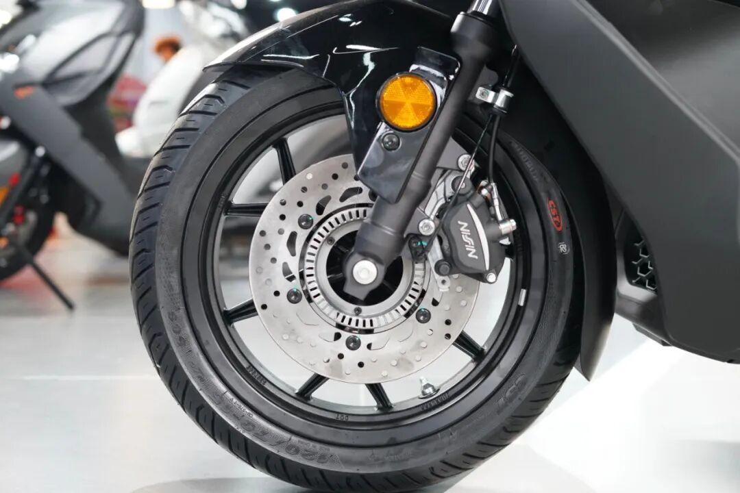 底盘方面,新款鸿350GS采用较为常见的正立式前减震和双液压弹簧后减震的组合,刹车上则配备前后日清卡钳,标配博世双通道ABS系统以及TCS牵引力控制系统。并且TCS牵引力控制系统支持开启/关闭功能,另外原厂还为它提供了手动驻车开关,就安全性上来说基本无需担心。