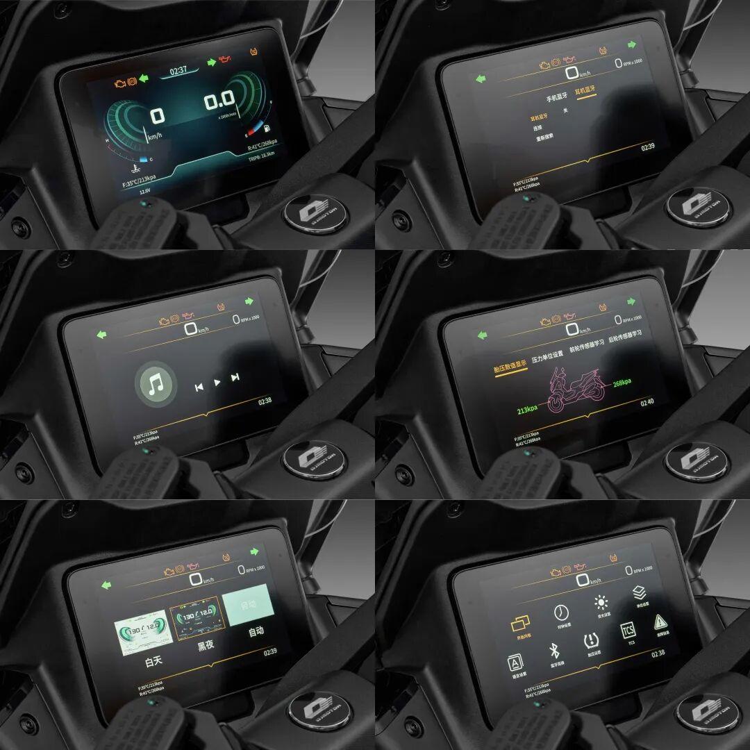 新款鸿350GS还配备了无级可调的电动风挡,这个配置不仅对于长途摩旅而言能够带来更加舒适的体验,也进一步提升了整车的豪华感。此外,像是无钥匙启动、18W双快充接口、胎压监测、边撑熄火、高清行车记录仪、T-BOX智能车机等配置也都一应俱全。