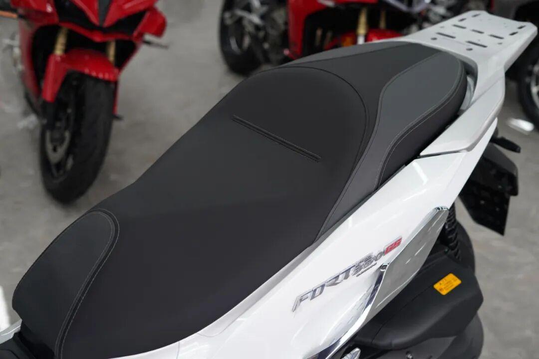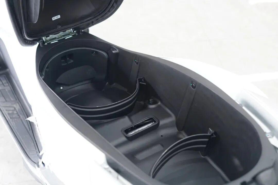 储物空间上除了前置物箱以外座桶空间达到48升的超大容积(可放入两顶全盔)并带有前后独立的分区隔断。如果是日常代步而言完全可以满足装载需求,若你对储物空间有更大需求也可以选配原厂45升尾箱使用。