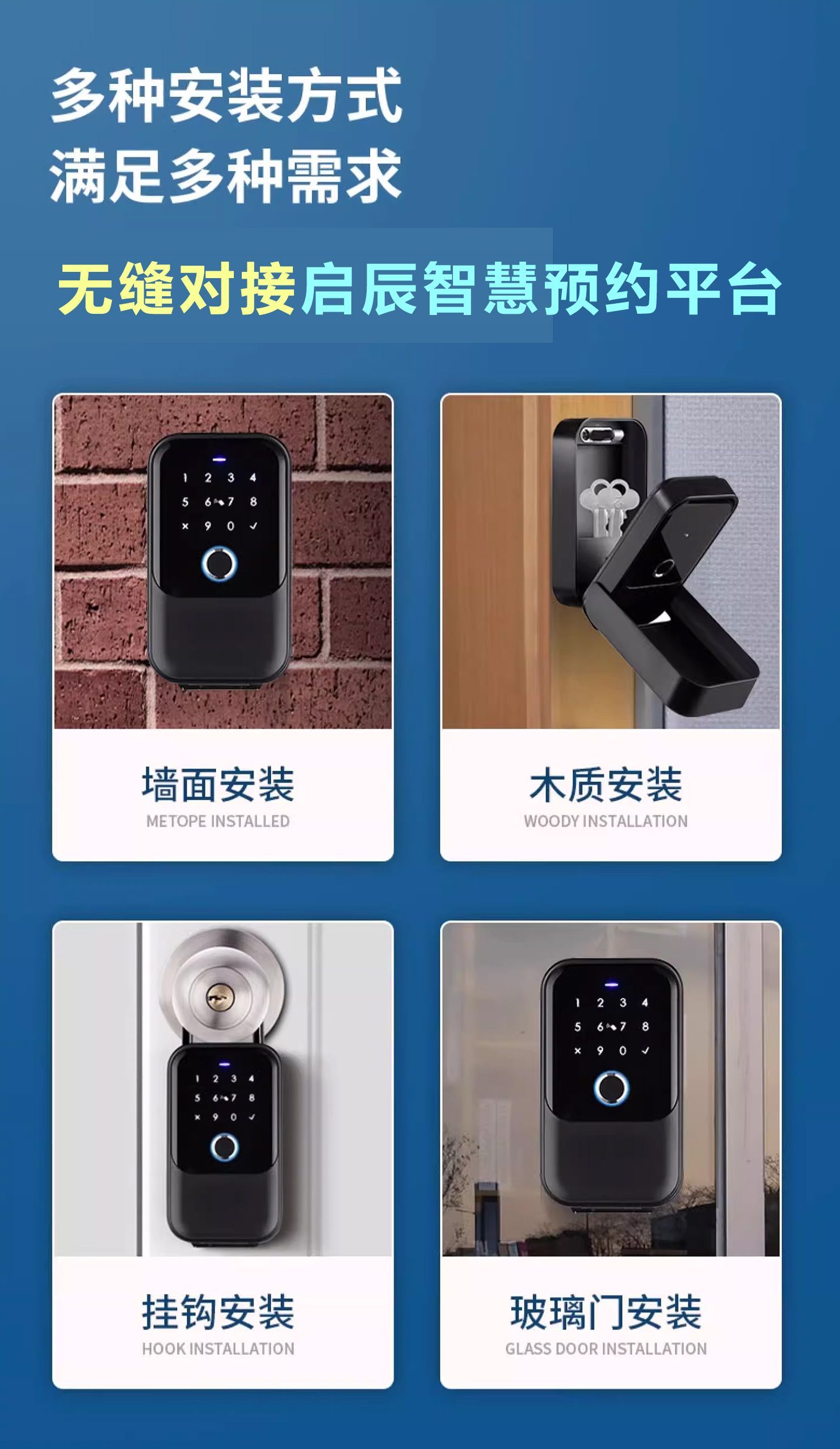 这套系统的核心优势在于"零改造"理念。无论是老旧的防盗门还是特殊规格的门锁,都无需更换或改装。钥匙盒采用壁挂式安装,免打孔设计,10分钟即可完成部署。对于民宿房东、公寓运营商而言,这意味着无需投入数千元更换门锁,也避免了与房东或物业复杂的沟通成本。