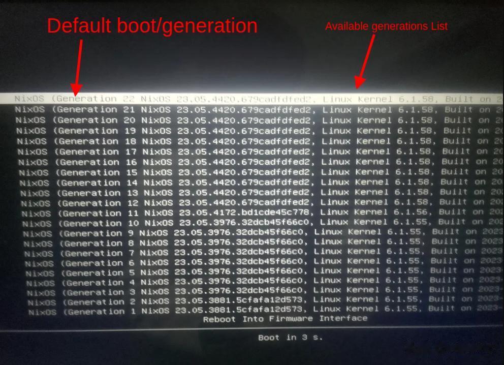 更绝的是,每一次更新都会生成一个新的“generation”(世代)。引导菜单里会列出所有历史版本。系统炸了?重启选上一个generation,几秒钟回滚!想把配置分享给朋友?直接发个.nix文件,对方一键复刻你的完整环境,包括所有软件版本、桌面配置、服务状态……