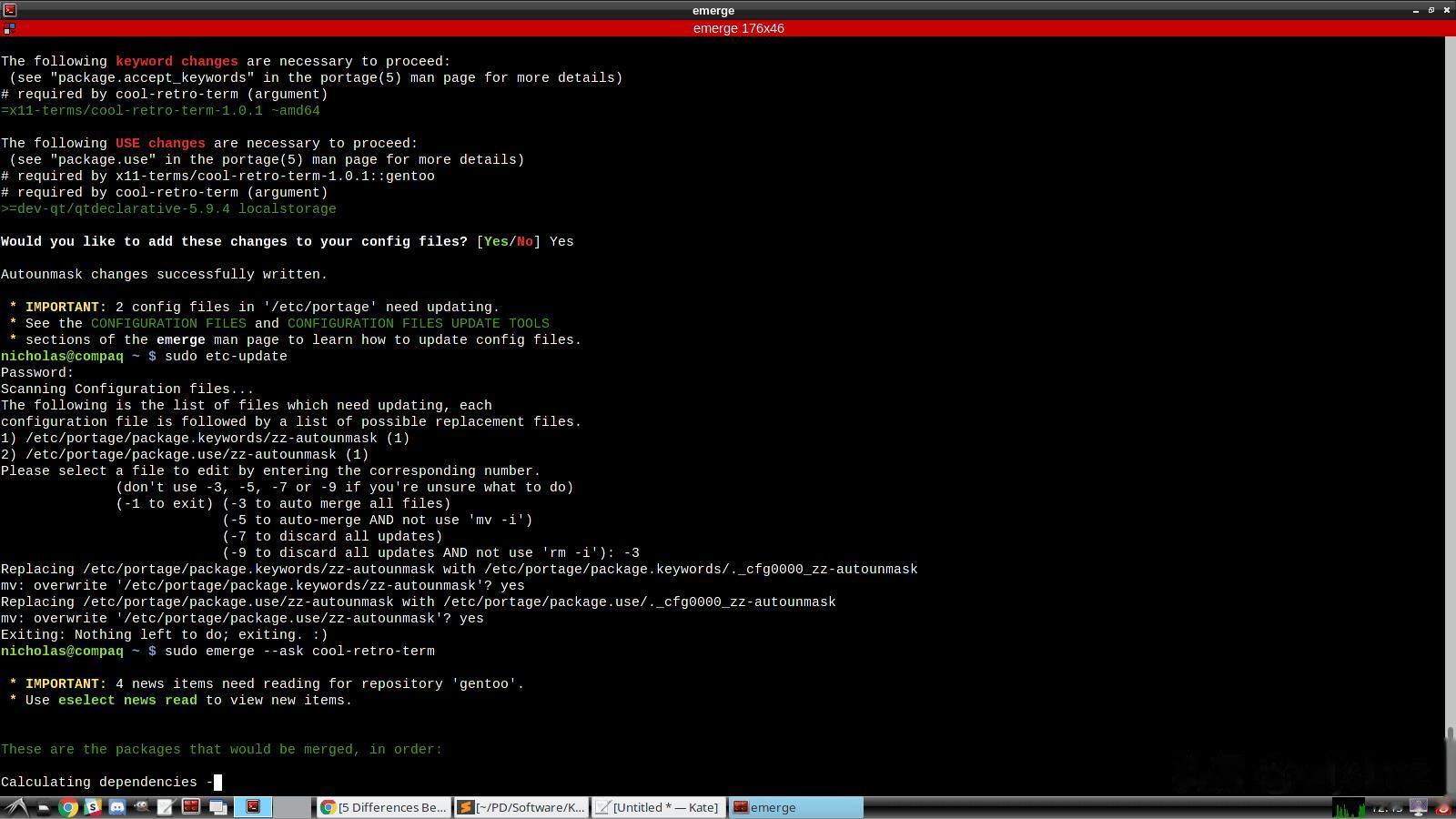经典的emerge编译界面——看那滚动刷新的依赖列表,是不是瞬间血压升高?