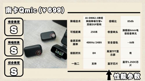 为了提供更贴合创作者和专业场景的收音体验,南卡QMic也是下足了功夫,性能配置全面优于同级标准,搭载48kHz采样率+24Bit位深的专业录音规格,人声还原度实测接近满分的98%以上,并配置AI-DNN2.5神经网络降噪,使得声音更稳定,人声纯净直逼录音棚级。还支持重度/轻度双档可调降噪、20档增益调节、6dB安全音轨实时备份、实时监听耳返等多种功能,其内置的鲸语Comm通信技术,实现最远250米稳定收音,配置性能直接拉满,难怪有知名数码媒体给出了非常高的评价:被誉为旗舰级领夹麦克风的巅峰之作。