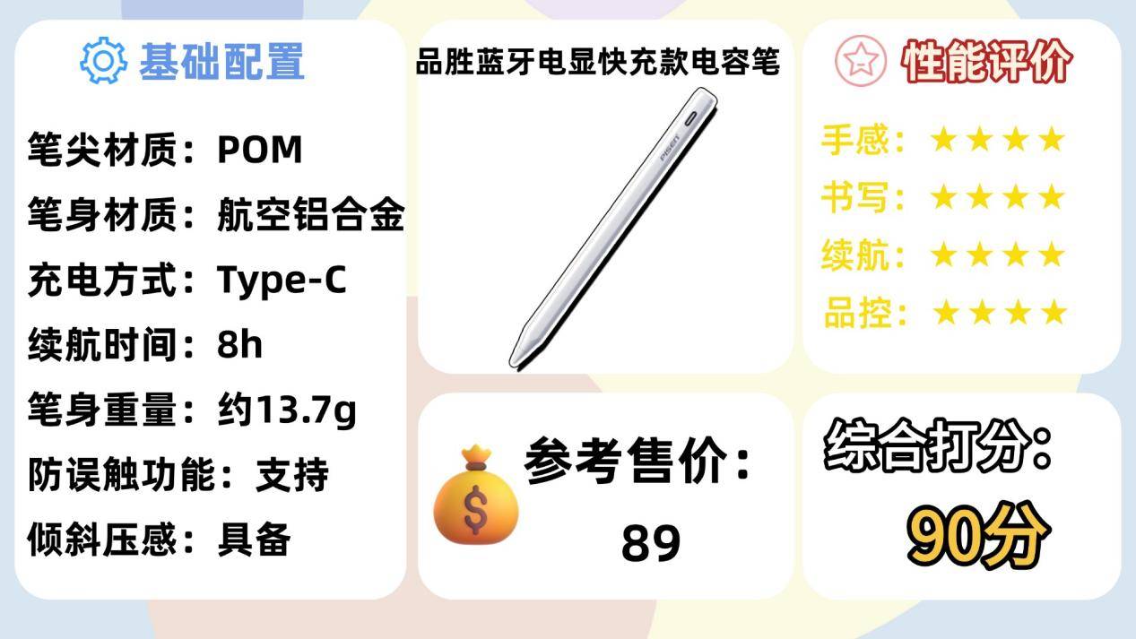 10大苹果平板手写笔推荐九:品-胜蓝牙电显快充款电容笔