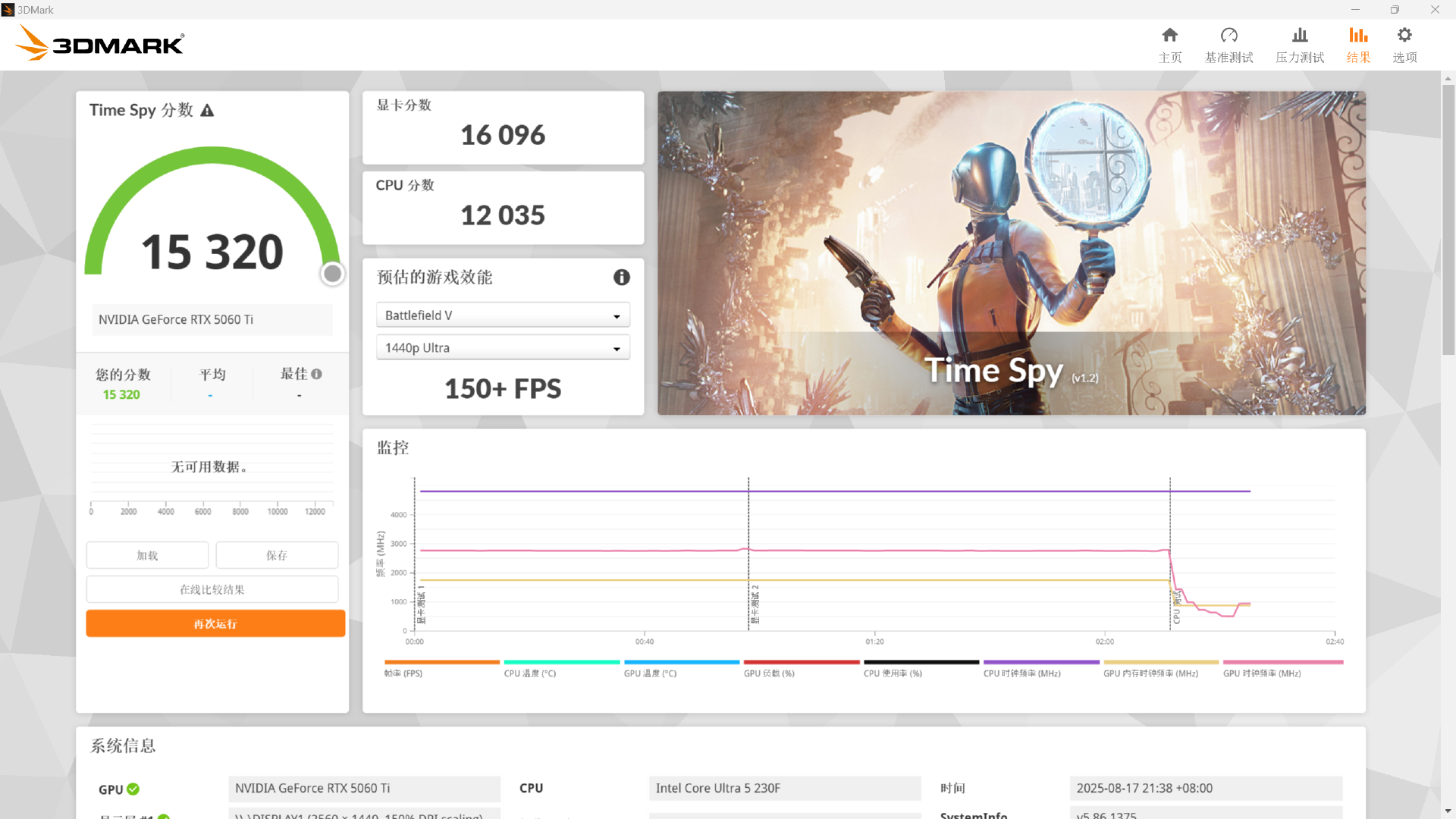 TS里,显卡分数为16096分,CPU分数为12035分。
