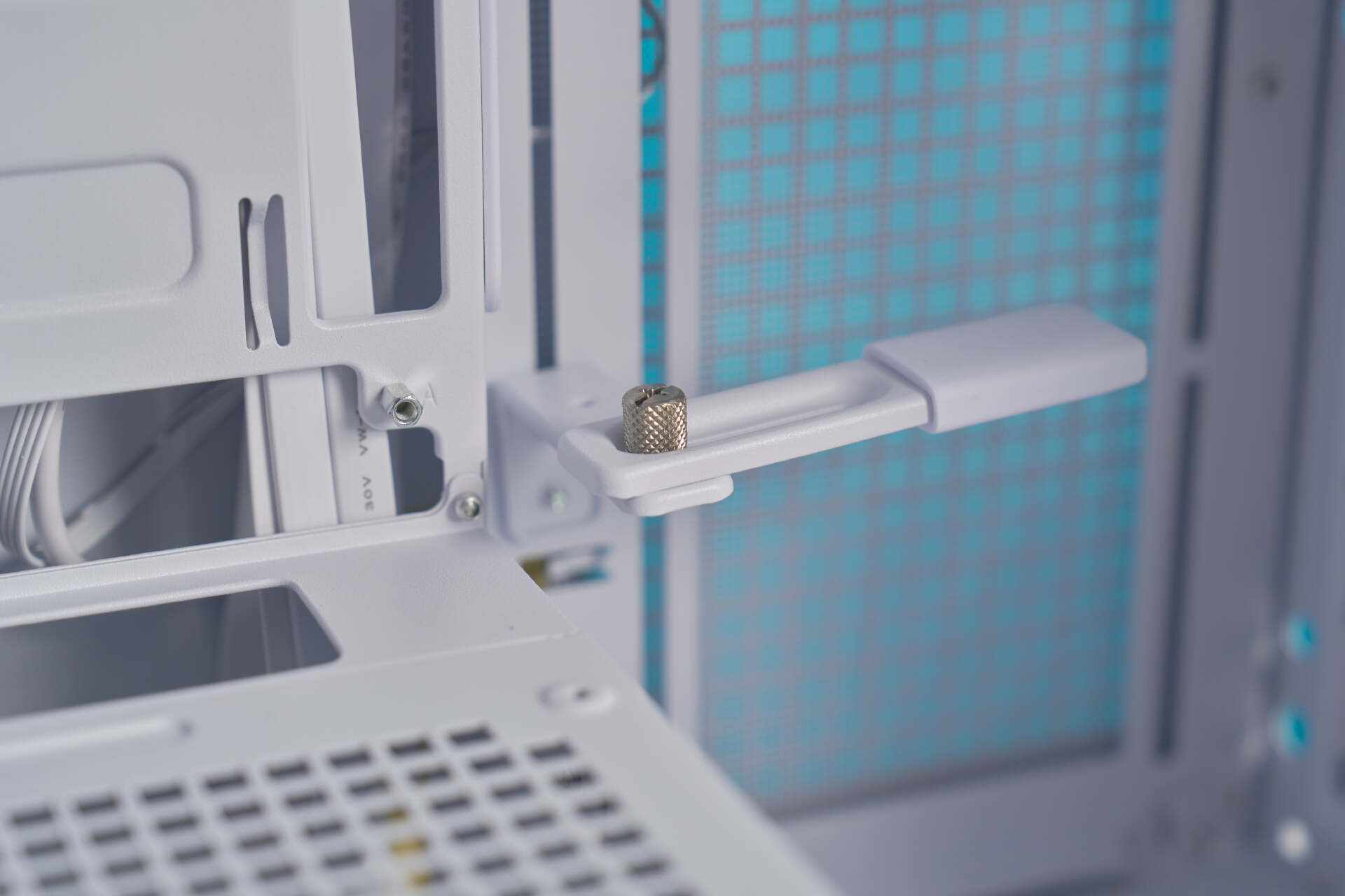 机箱最大可以安装ATX主板,并且自带了显卡支架,右侧还有三把风扇的安装位置。